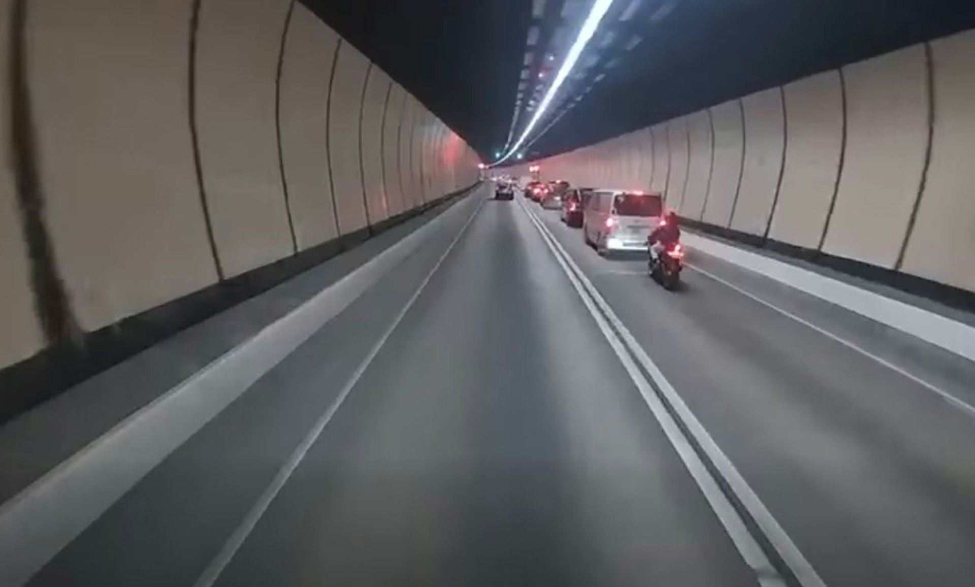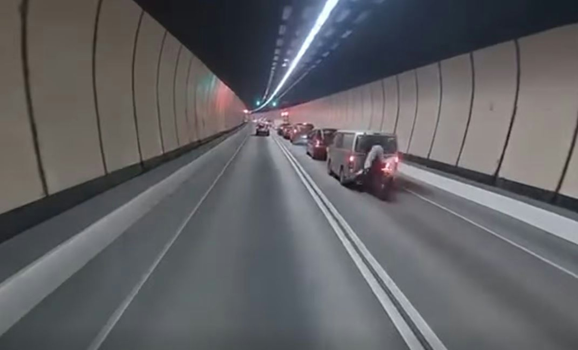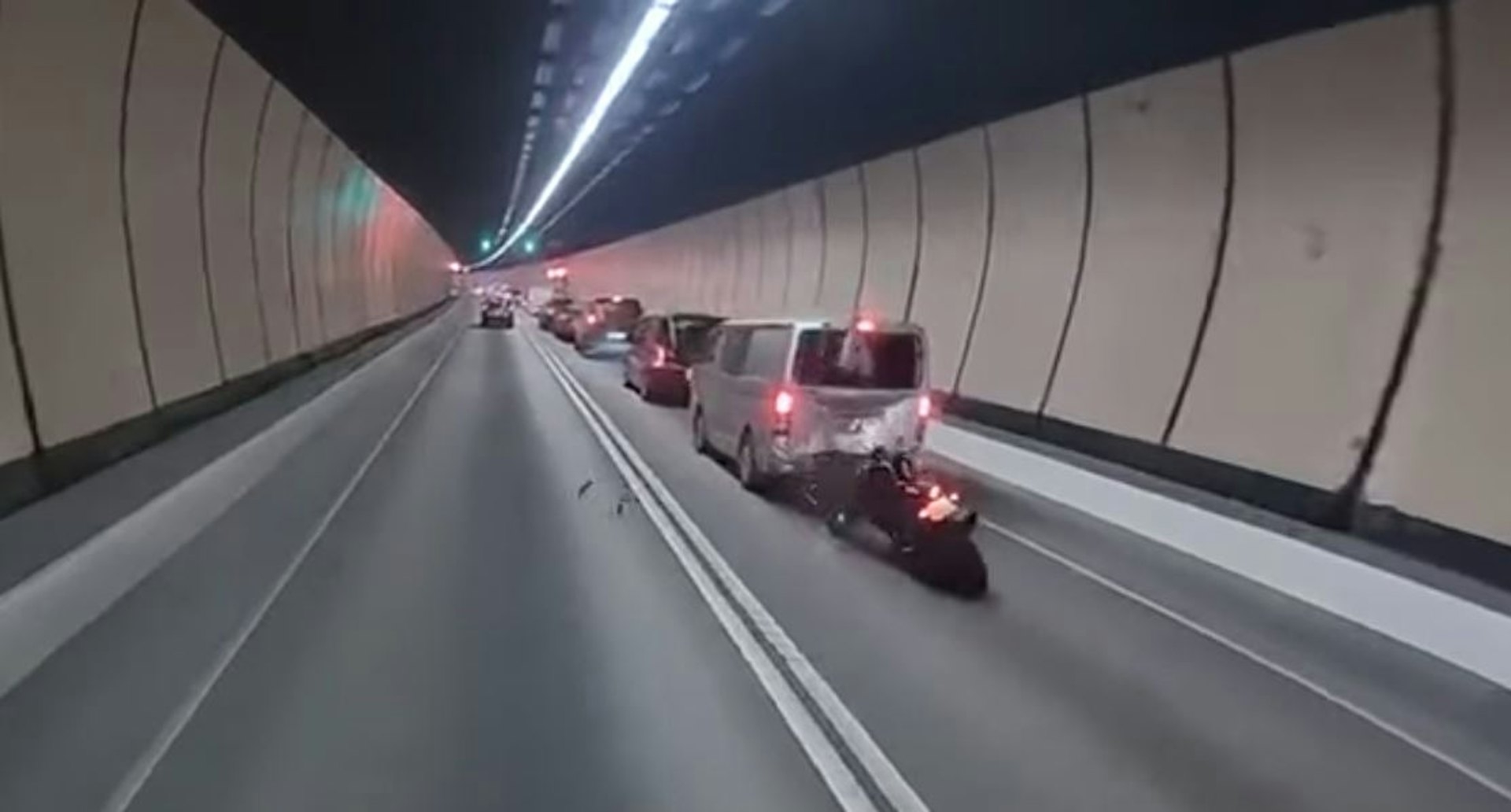 大老山隧道內今天 (2月3日) 早上8時許上班繁忙時段,一輛客貨車沿管道駛往新界,後方的電單車高速直撼前方涉事客貨車,鐵騎士撞穿玻璃插入該車廂內受傷。