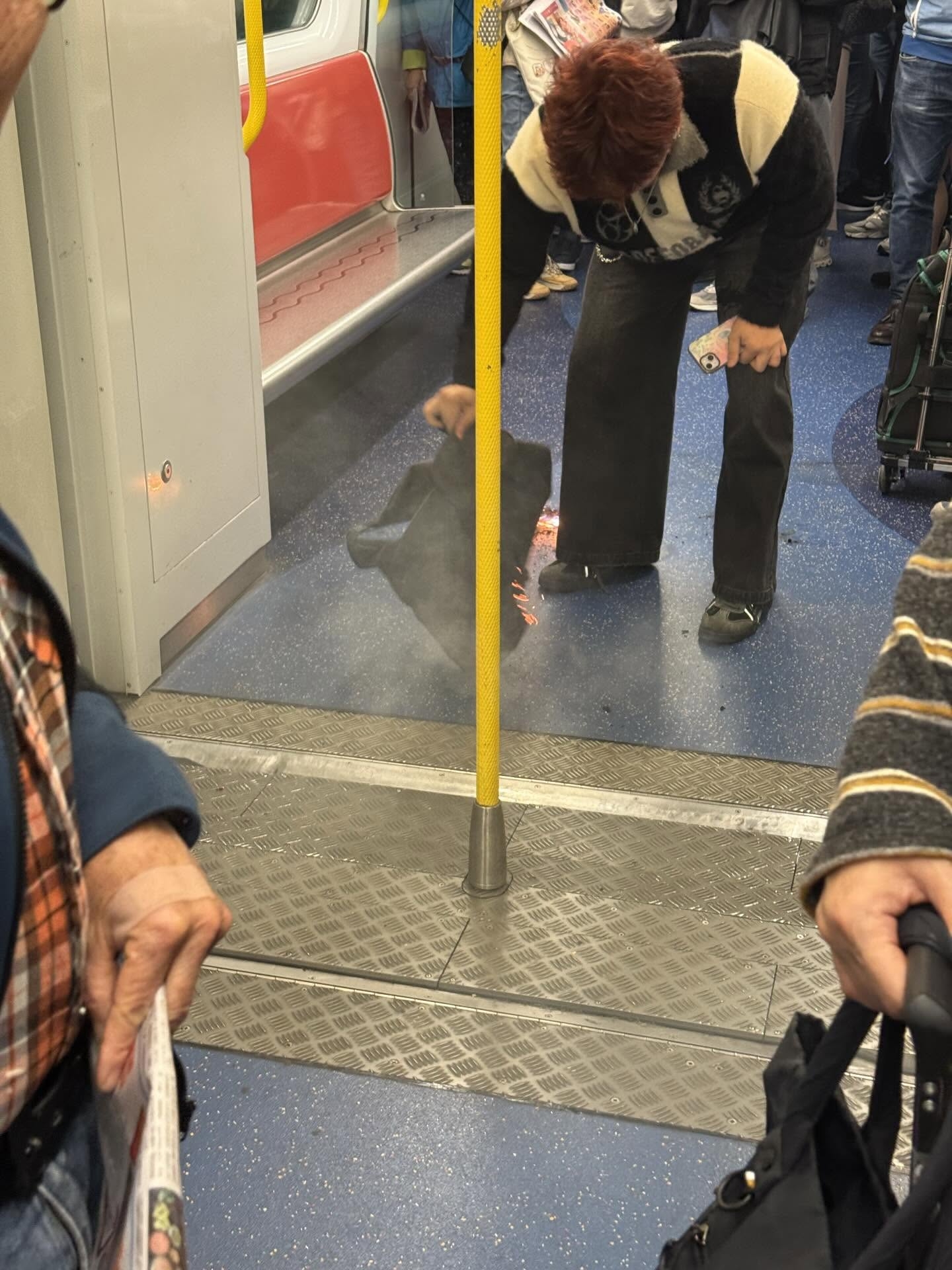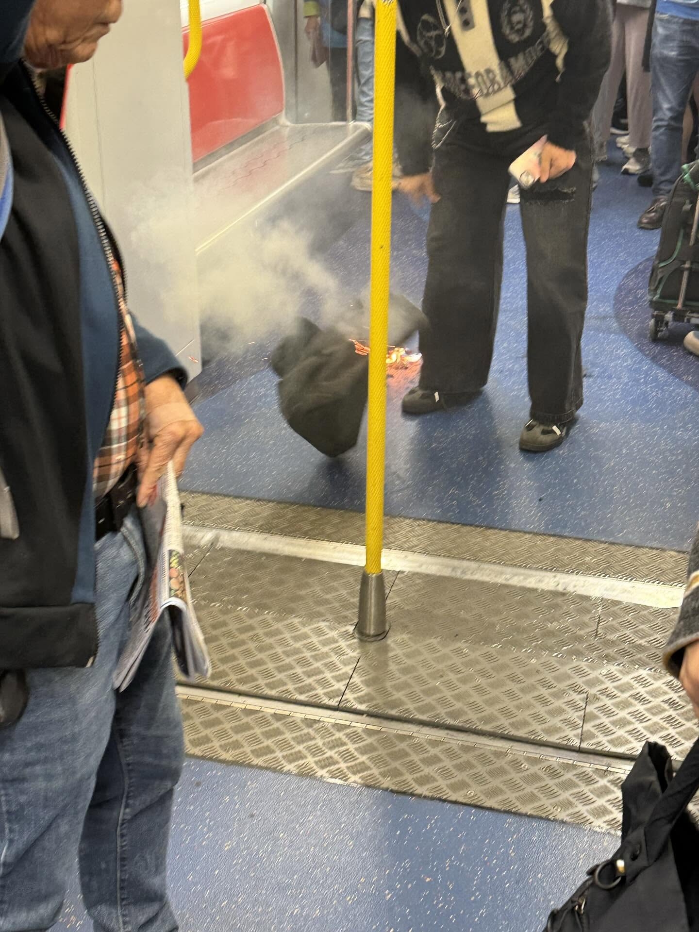 網上片段見到,事發後有乘客用滅火筒協助滅火,車廂内白煙滾滾,煙霧瀰漫。