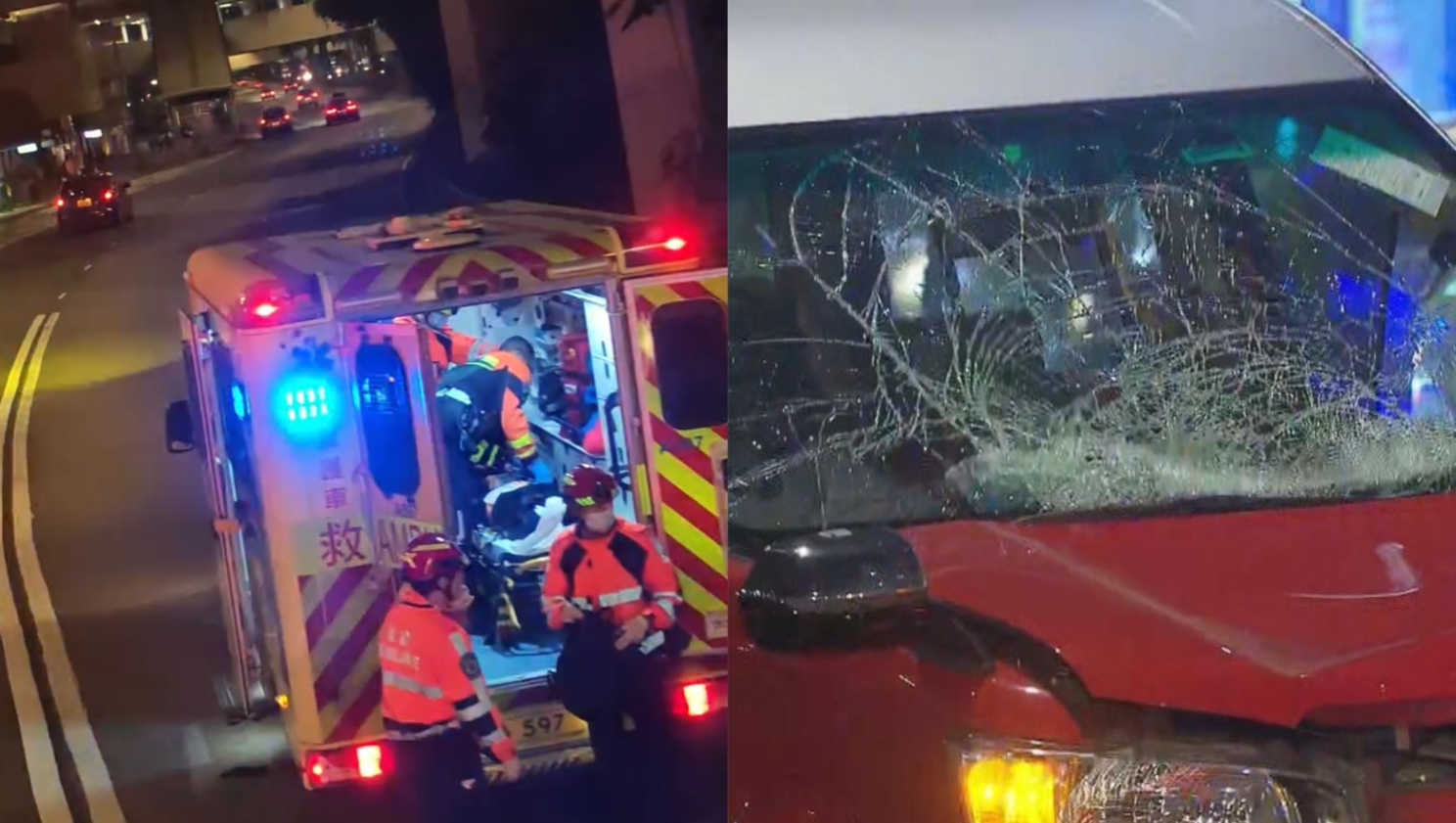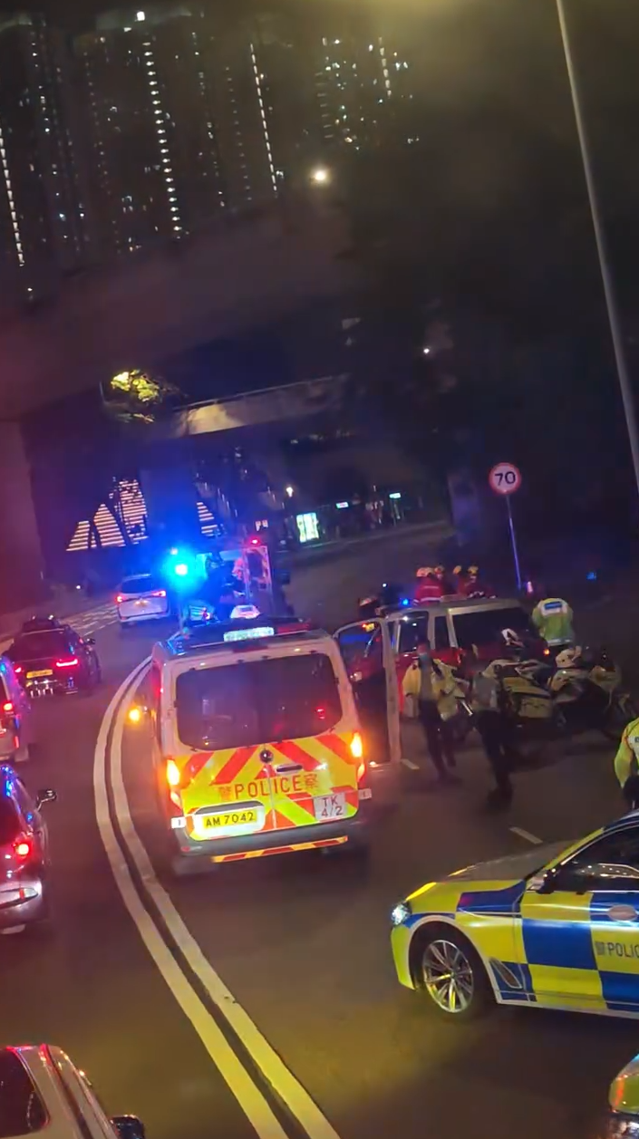 事發後涉事的士停在觀塘道往觀塘方向一個轉彎位,車頭損毀、擋風玻璃碎裂。意外現場快線遺下一攤血漬,意外原因有待調查。