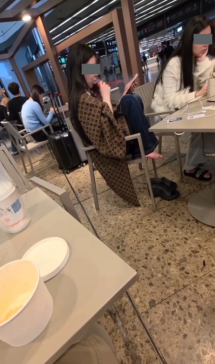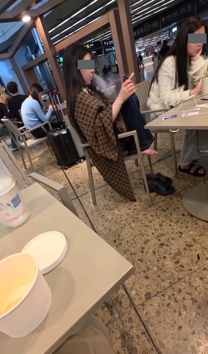 有片 | 西九高鐵站食肆美女脫鞋放腳上椅 旁若無人公然違法吞雲吐霧