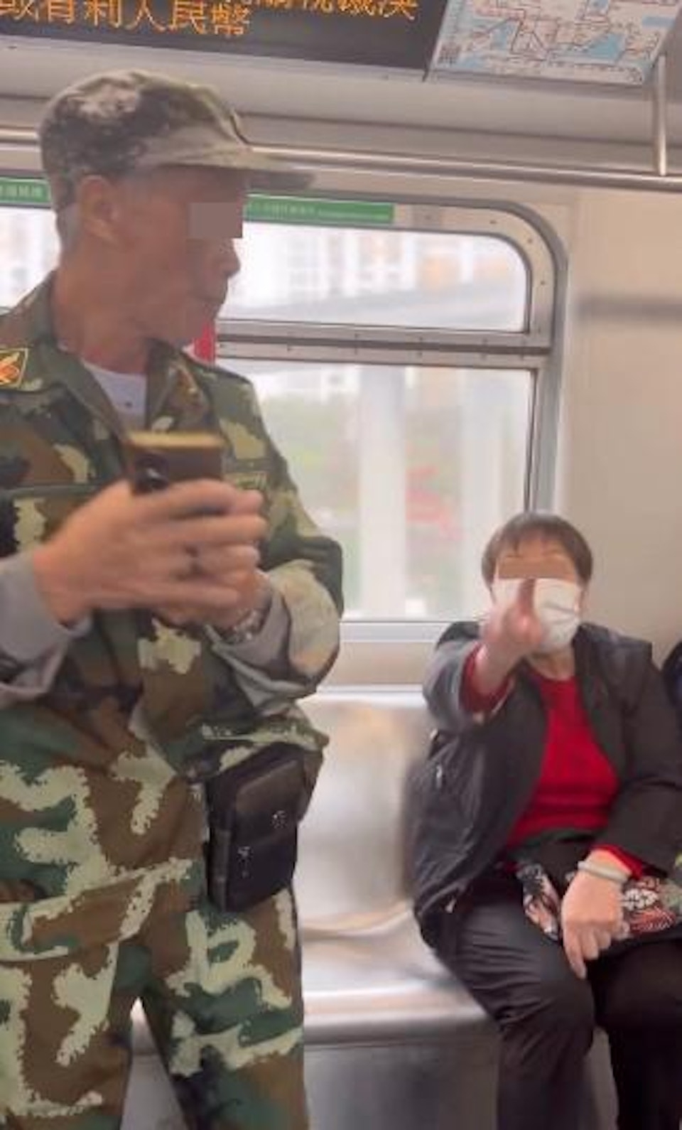 該手機視頻中所見,女帖主當時乘坐荃灣開往中環方向的港鐵列車,在車廂內和1對疑似夫妻的長者發生激烈爭執,其身中穿迷彩服的阿伯更舉起手機和女帖主「互影」。