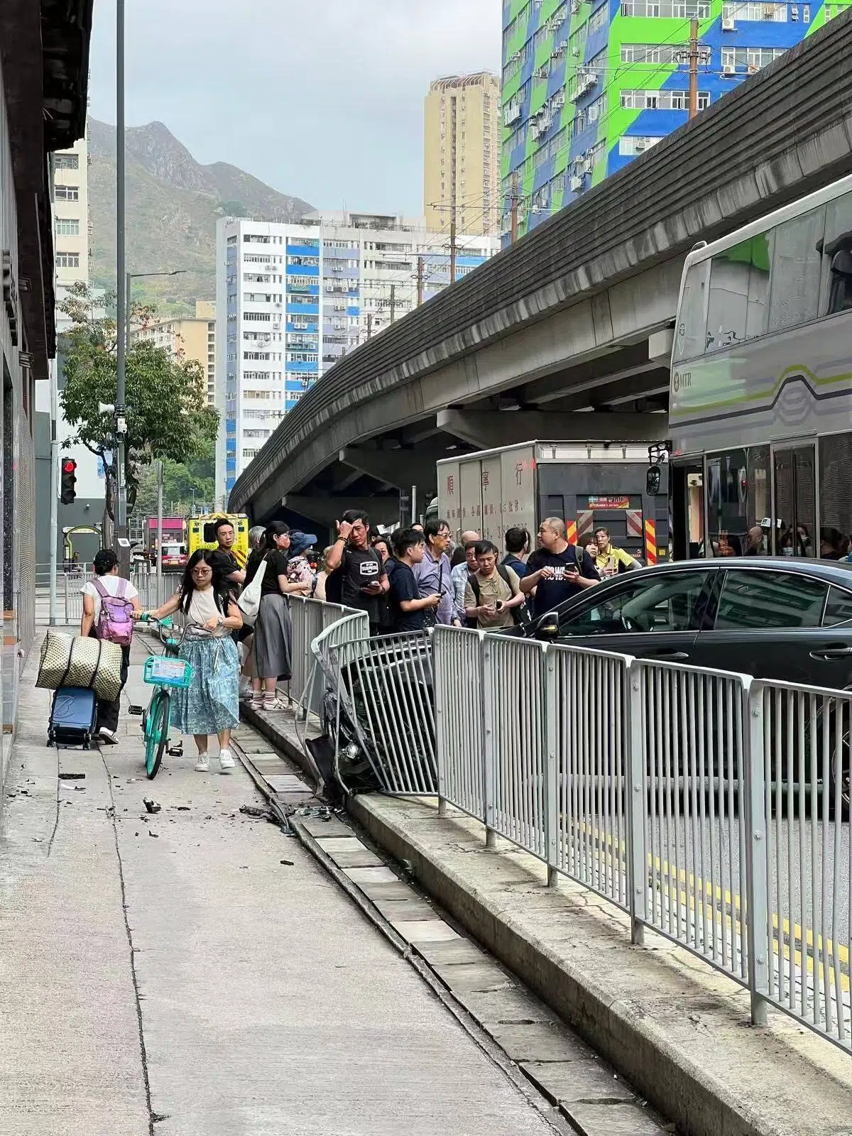 此外,根據網上社交平台流傳的圖片及視頻可見,現場鐵欄被撞毀,遺下一地碎片,巴士乘客亦需要緊急落車。