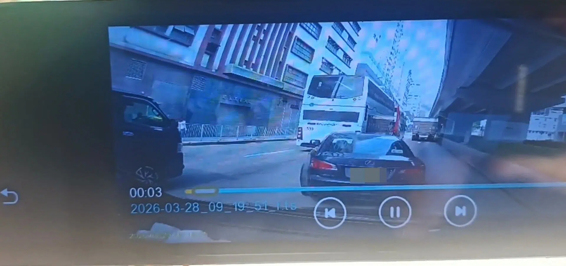 屯門警署對開今天 (3月28日) 有司機撞車後逃逸。網上社交平台今天流傳一段車cam片段顯示,今早9時許,有一輛黑色私家車駛至杯渡路近屯門警署對開一個紅綠燈位前,涉事私家車懷疑想由右線切入中線,但突然失控加速直撼路邊鐵欄,由於衝擊力之大,隨後更反彈撞到中線的巴士,片段就此結束。