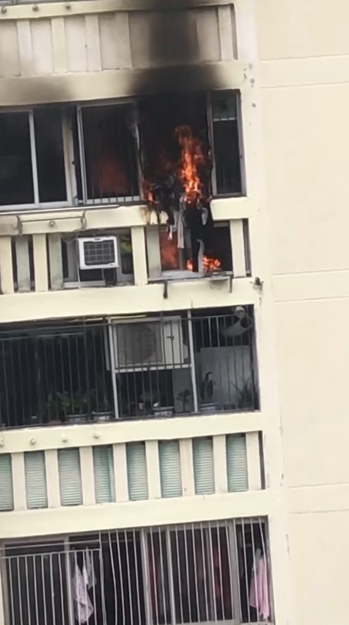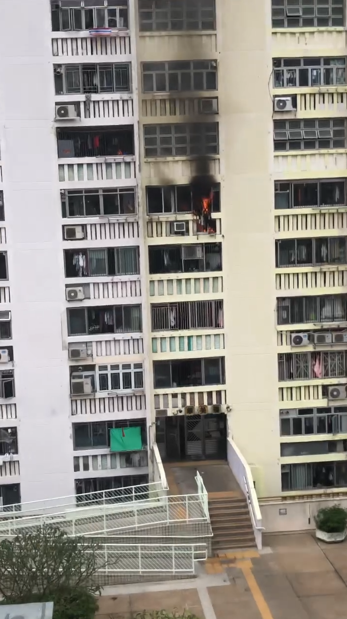 香港仔華富邨今天 (3月28日) 有單位起火,起火單位噴出火舌及傳出爆炸聲,不斷有黑煙冒出。