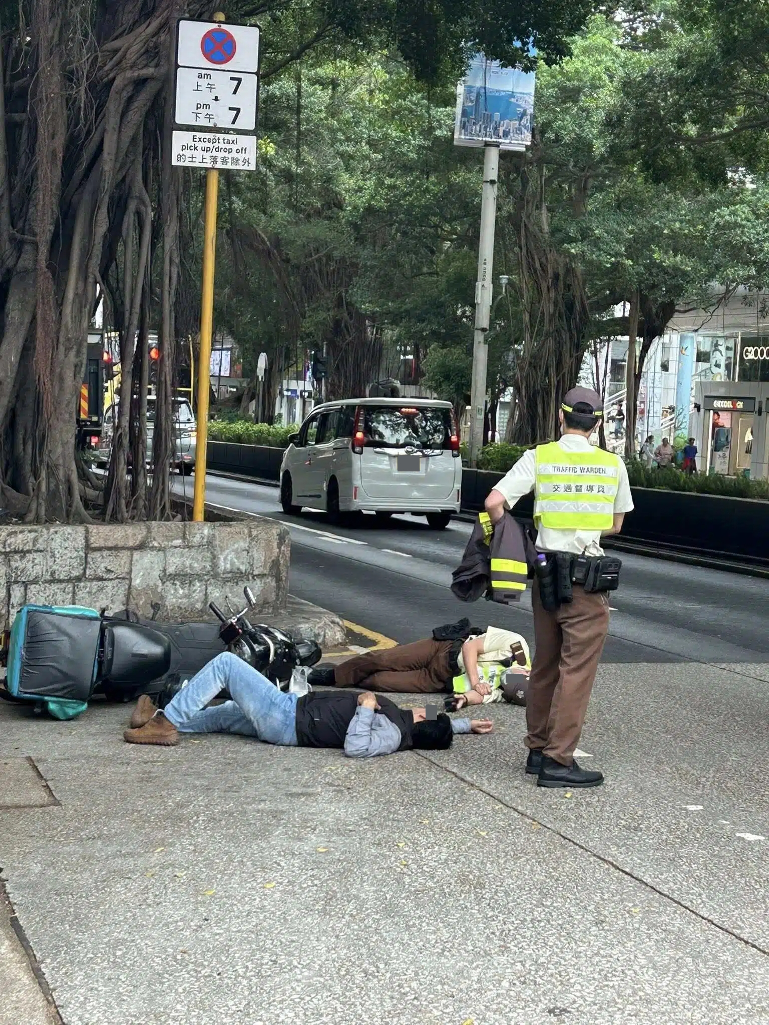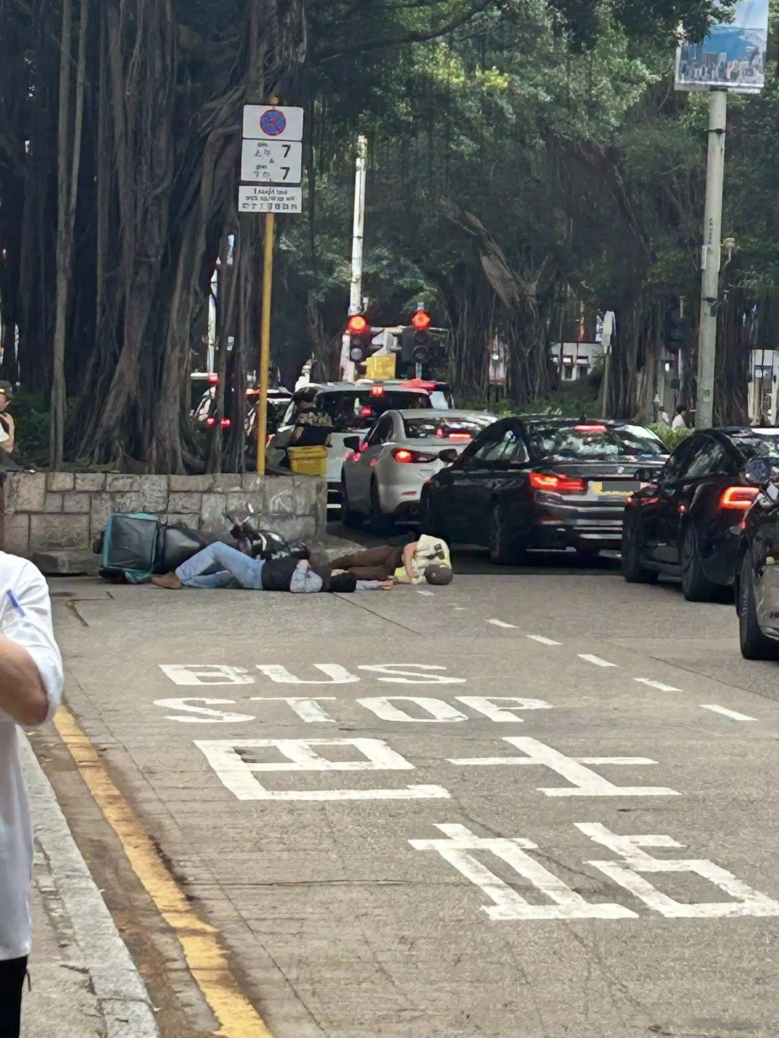 根據網上FB群組流傳的圖片可見,意外發生後2人雙雙倒地,痛苦倒地等待救援。![]()