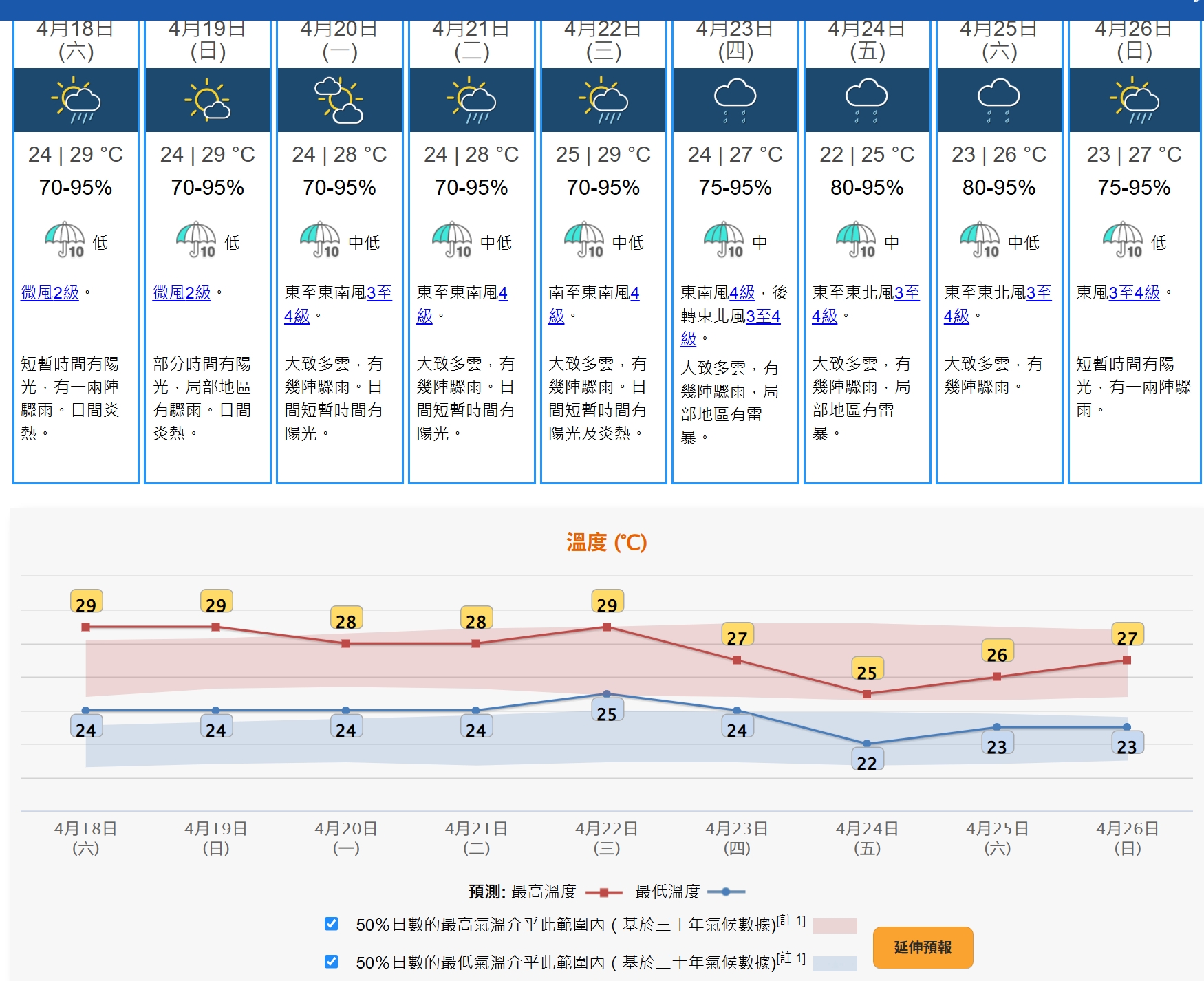 天文台展望週末期間短暫時間有陽光及炎熱,但局部地區有驟雨;至於下周初有幾陣驟雨,中後期天氣漸轉不穩定。