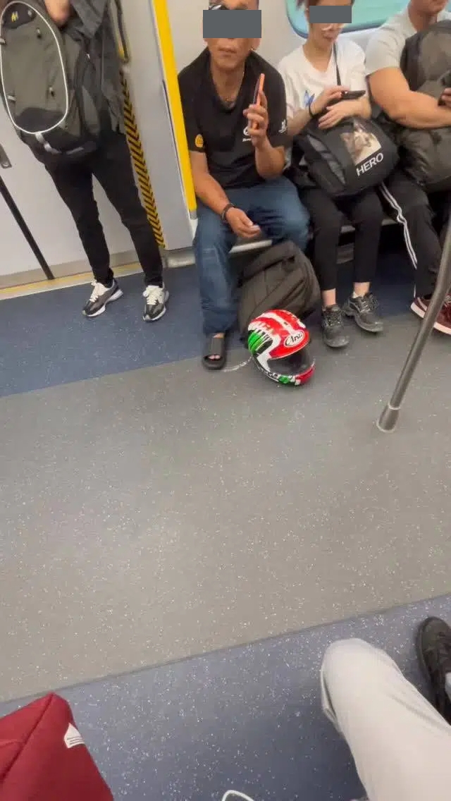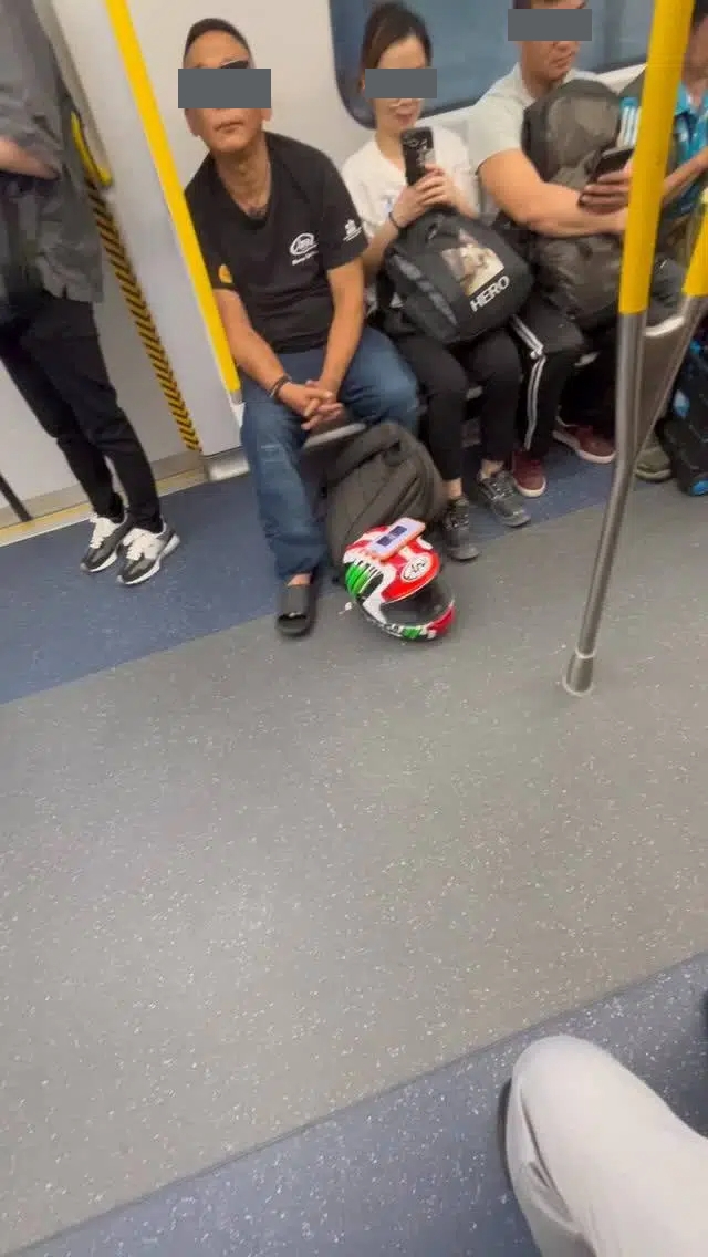 該手機視頻中可見,在港鐵車廂內一名戴黑超穿拖鞋擕頭盔的大叔,連環以手機自私大聲爆歌,勁歌令車廂一度彷彿變成的士高。