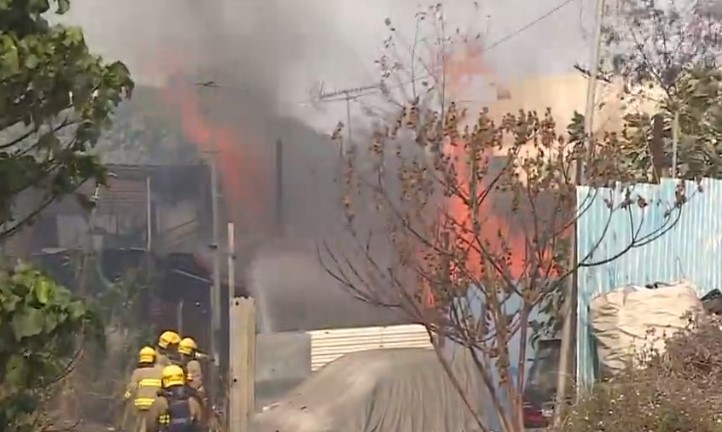 米埔嘉龍路一個露天倉庫場地今日下午12時許發生火警。