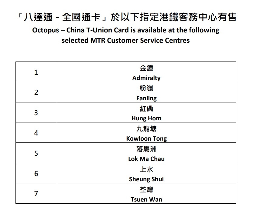 八達通宣布「全國通卡」即日起在金鐘站、紅磡站、落馬洲站等7個港鐵站,以及OK便利店發售,每張卡售價是88元。