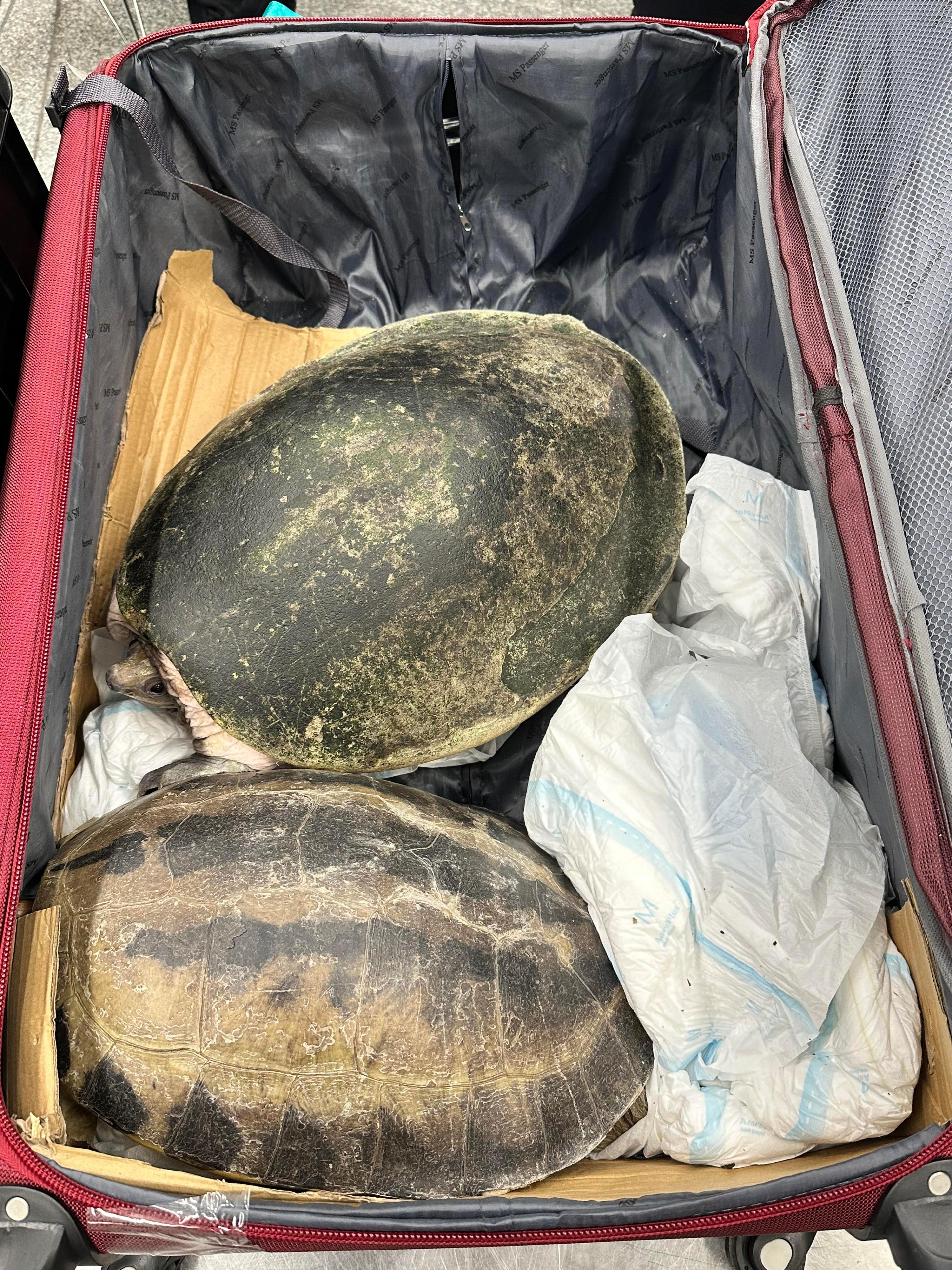 海關人員檢查該男子的寄艙行李時,發現內藏63隻活龜。經漁護署人員查驗後,懷疑該批活龜屬《瀕危野生動植物種國際貿易公約》所列明的瀕危物種,是在本港受管制物品。