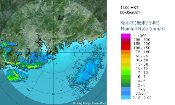 一股偏東氣流正影響廣東沿岸。同時,驟雨及雷暴正影響廣東西部及其鄰近海域。