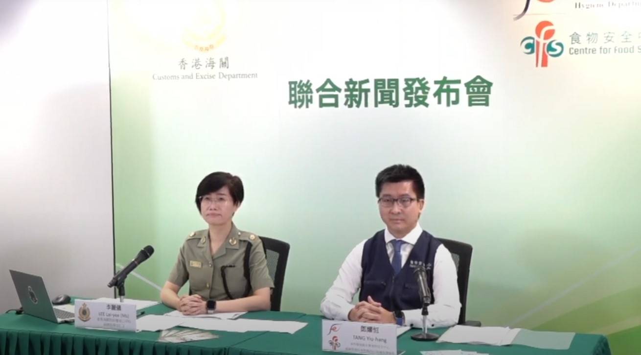 海關及食環署食物安全中心今日召開記者會交代行動詳情,採取聯合行動,打擊入境入士非法攜帶受規管食物到港。