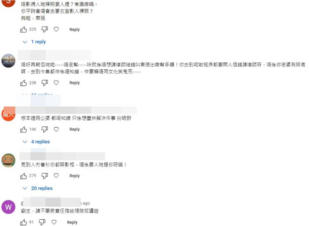 有網民看完昨晚的一集,在「東張+」YouTube頻道炮轟說:「唔影得人哋裸照要人提?常識嚟喎。你平時會唔會去更衣室?影人裸照?」「去到今集都仲係唔知錯,仲要賴唔同文化笑鬼死…..」