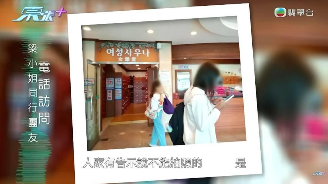與劉太同團前往濟州的梁小姐接受《東張》訪問,澡堂的門口有不准拍照及不准穿衣的告示,事件發生後導遊亦有立刻提供協助,梁小姐表示,若果當時知道她拍照的話,一定會阻止。