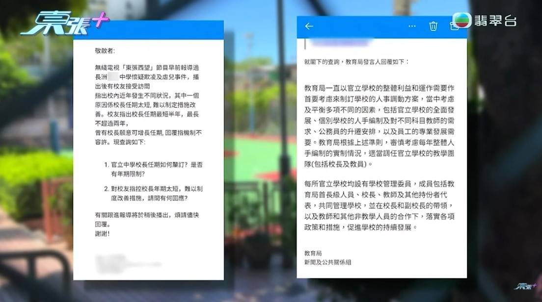 其實之前和現在的報道播出後,很多網民都質疑為什麼長洲這間中學可以這樣無法無天,現在換了校長,涉事的教師又可以獲升職,令人質疑學校的機制和程序是否出了問題,不少人期待教育局可以介入關注和了解事件。