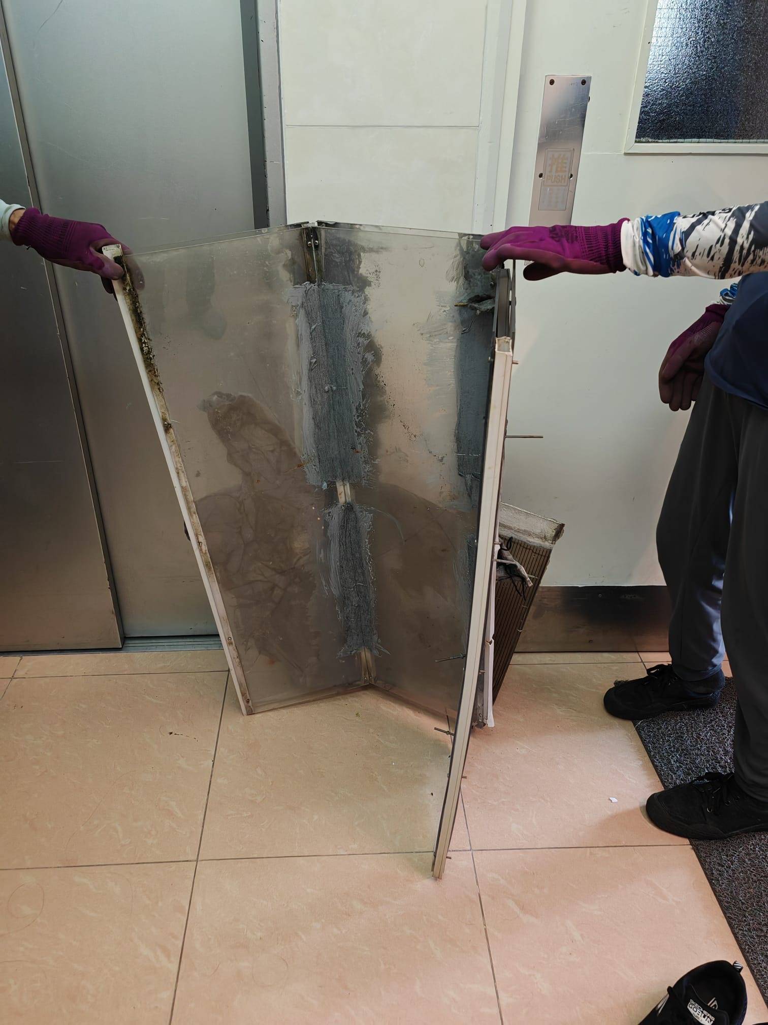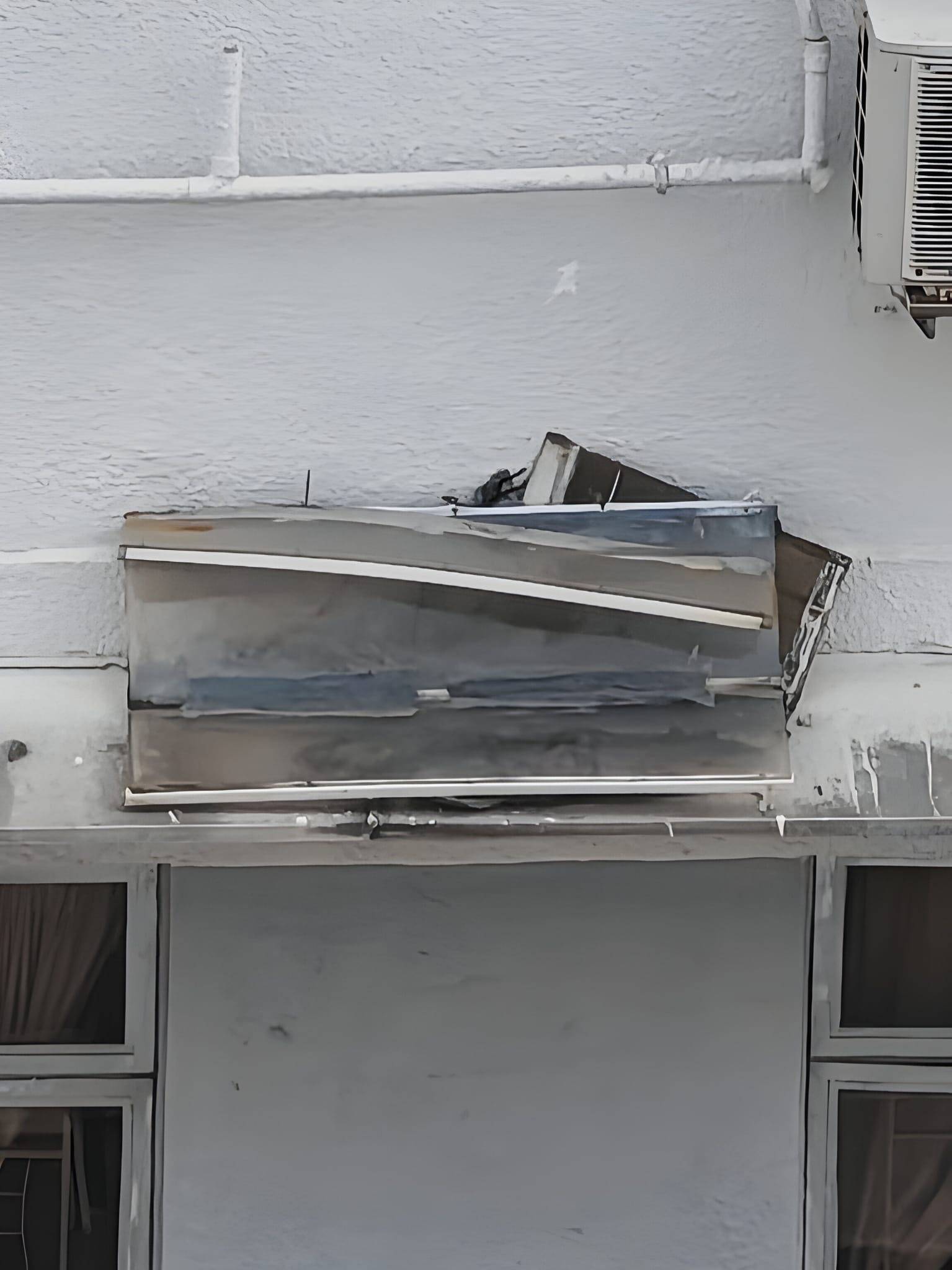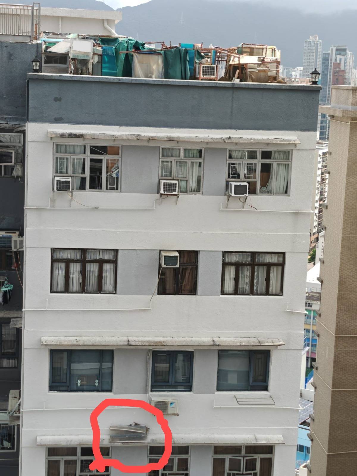 韋先生提供的相片可見,飛落樓下的更加包括超大型雜物,一旦擊中途人,後果不堪設想!