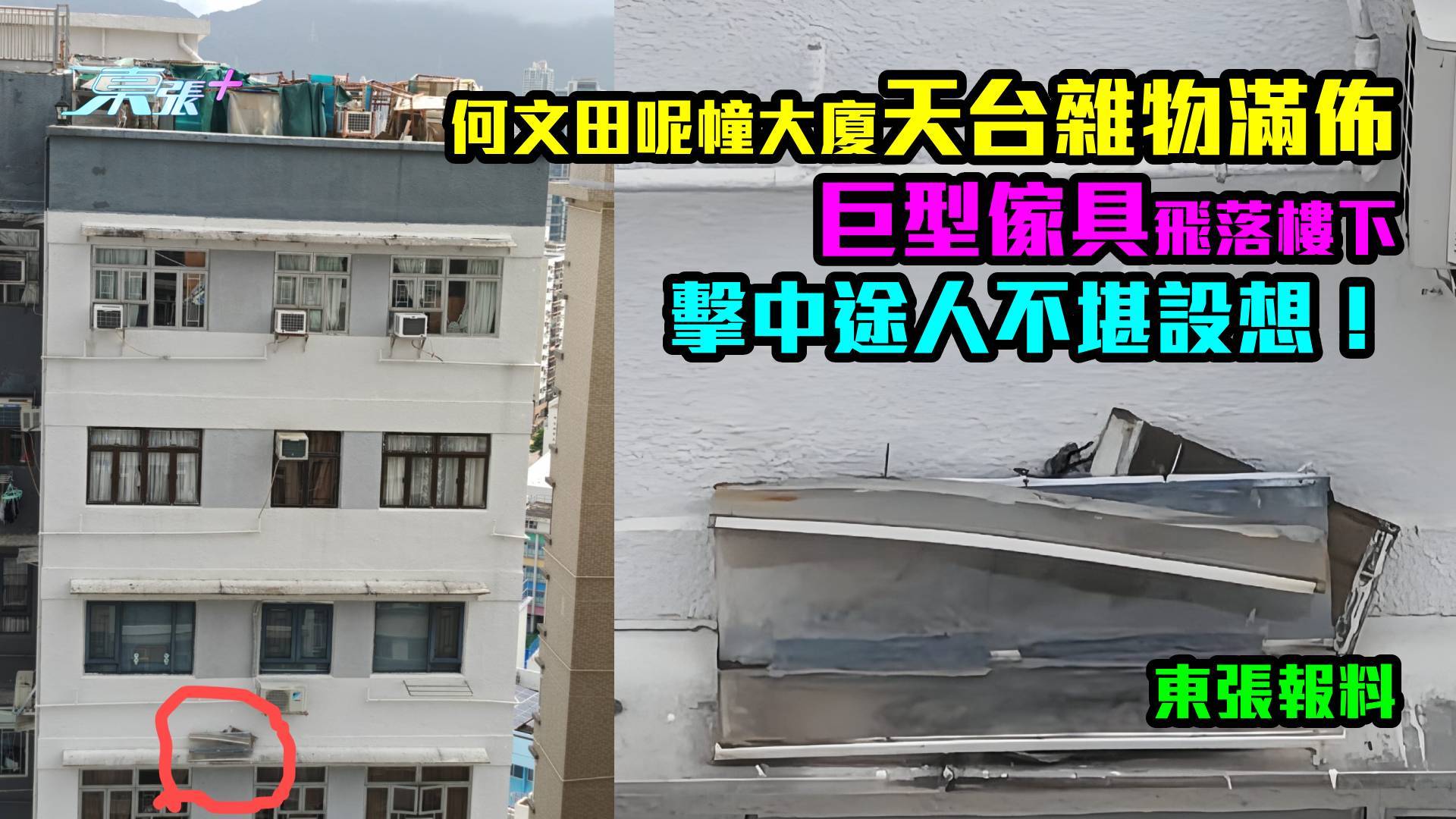 早前颱風摩羯襲港,不少舊區天台的雜物被吹落街,有何文田區觀眾向東張西望報料,此區內有大廈的天台長期擺放大量雜物,颱風襲港期間,更有多件大型傢俬吹落街,對附近街坊構成危險。「東張+」報道後,九龍城區議會在積極跟進中,而「東張+」就個案向屋宇署查詢,屋宇署回覆指有關情況不屬於屋宇署的規管範圍。