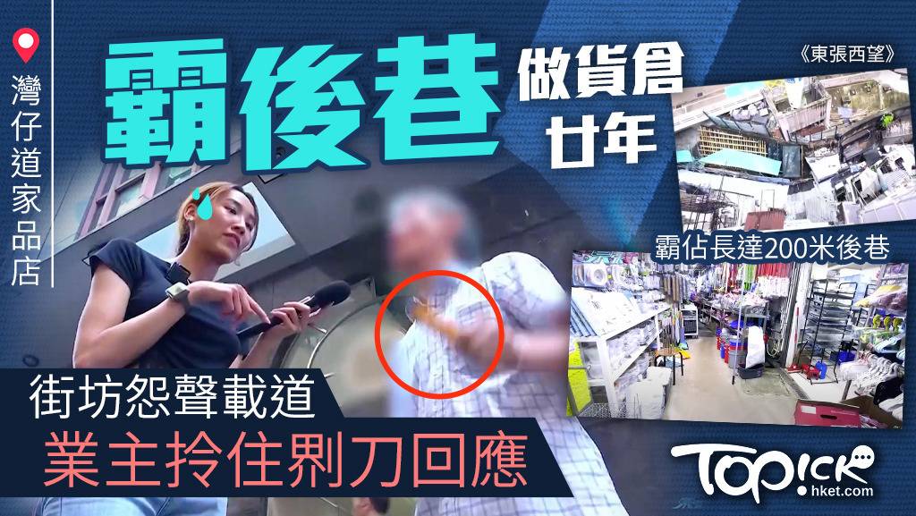 灣仔道有一家品店大業主林先生說這句話時霸氣十足,難怪他涉嫌非法霸佔後巷用地超過20年建立「家品王國」,當中更涉及政府用地,街坊也敢怒不敢言,連商店也無奈接受後巷無法通過的消防隱患。東張踢爆事件之後,網民感到嘩然,質疑香港怎麼有地方可以這樣無法無天?很多本地傳媒都有跟進事件,而且網民都很關注攝製隊採訪時,對方不斷揮舞鎅刀的危險狀況,擔心攝製隊安全。![]()