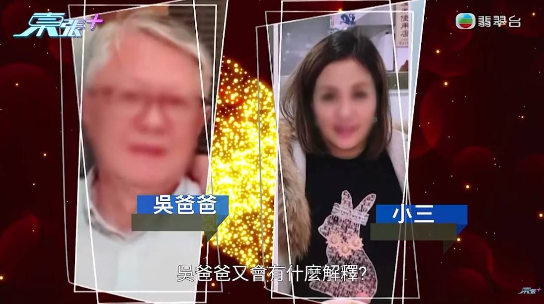 吳小姐坦言,爸爸迷上一個與自己同歲的女人,覺得「非常核突」:「個『小三』原來個年紀同我一樣,咁我更加覺得呢啲女人係為錢先黐埋去你度啦。我話『出面個女人係咪貪你啲錢咋,你好好睇清楚啲喎』。然後佢就話『咩人我自己點會唔知呀,都一齊10幾年。』」吳爸爸更理直氣壯認為,有錢人有多位情婦是很正常的事。