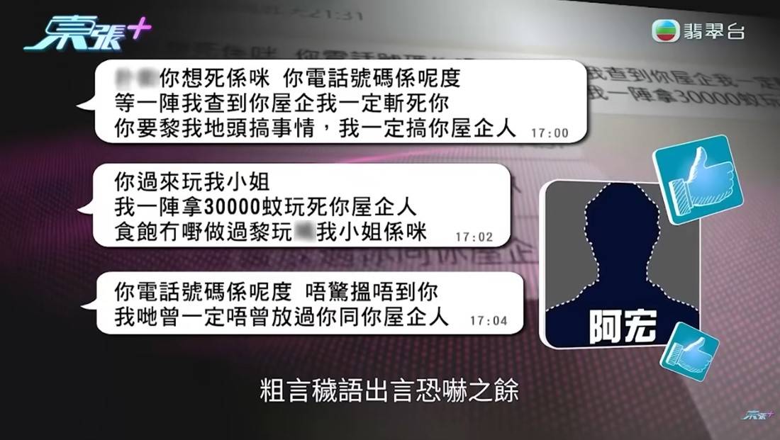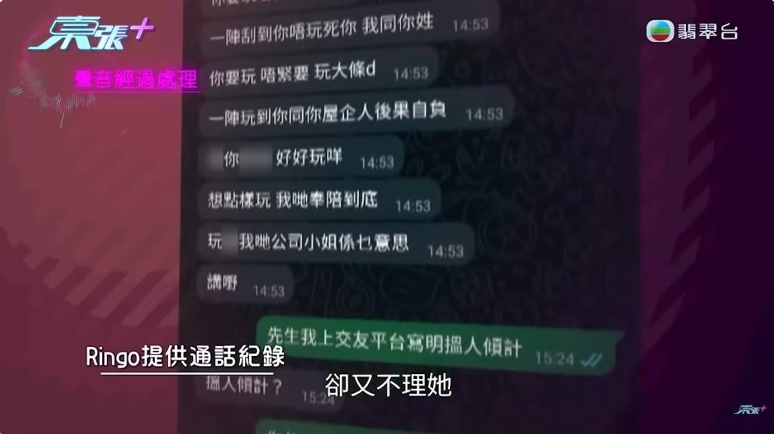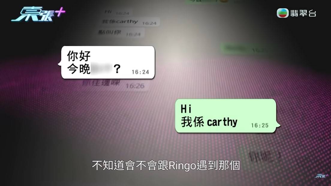 最初他覺得最奇怪的事,難道是拿公屋賣淫?Ringo強調自己只想交友,沒有想過要尋歡,所以拒絕Cathy,沒料第二天有人聯絡他:「有個自稱為公司手下的人找我,說我玩弄他們公司的小姐,說我約了他們公司的小姐卻又不理她,然後發了砍人的片段給我,恐嚇我要把我找出來。」