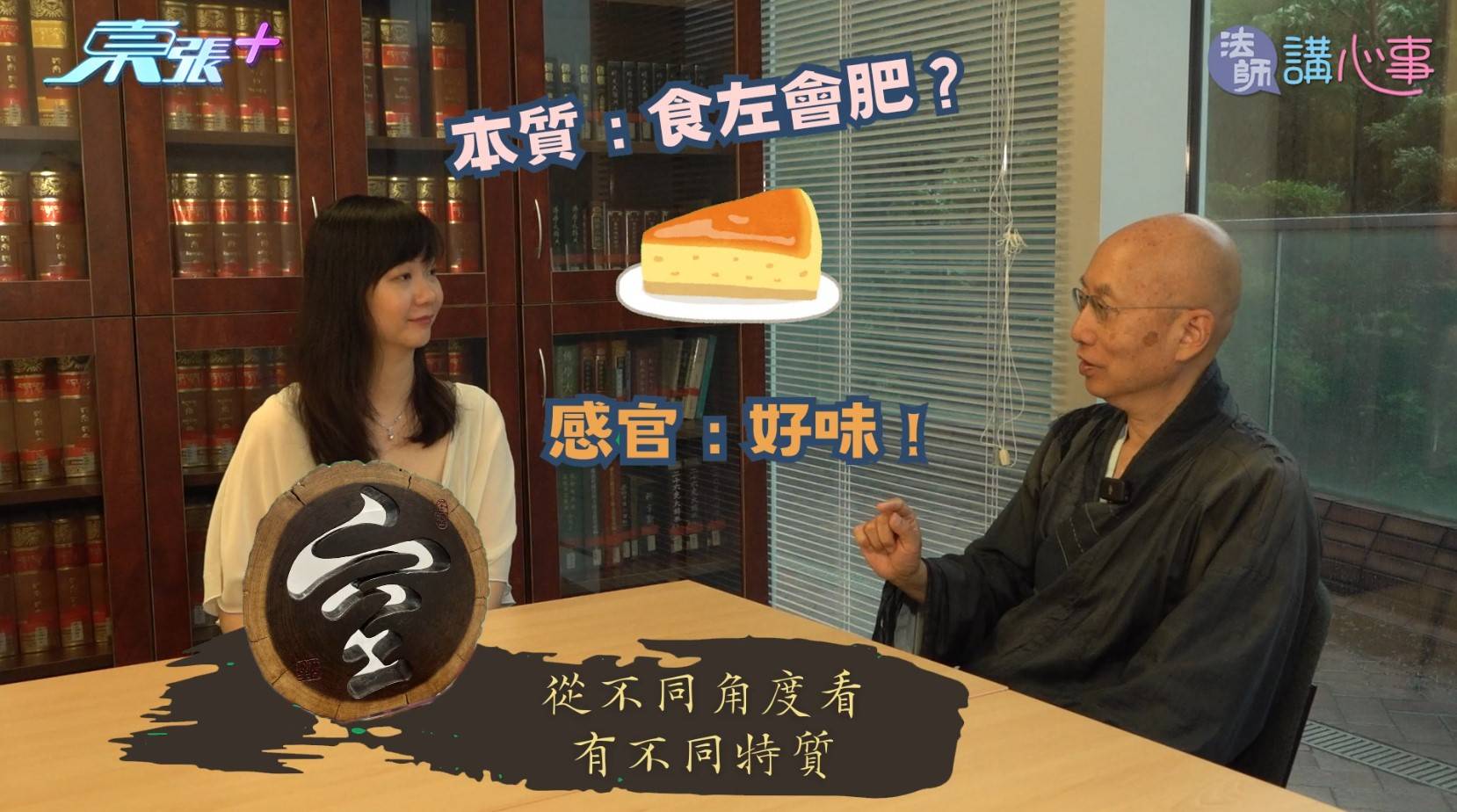 衍空法師以大家愛吃的芝士蛋糕來解釋角度是什麼的一回事。世間一切事物其實都可以用俗世間的角度,以及本質的角度這兩個角度去看,一般人看見芝士蛋糕會垂涎三尺,因為大部份人都知道它「好味道」的特質。