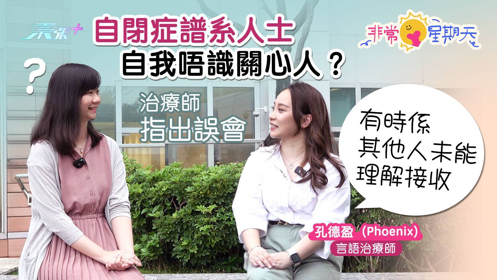 「東張+」《非常星期天》專訪會繼續隔周日推出,下一集(29/12)Phoenix會繼續探討自閉症譜系人士的社交需要和困難,敬請留意。