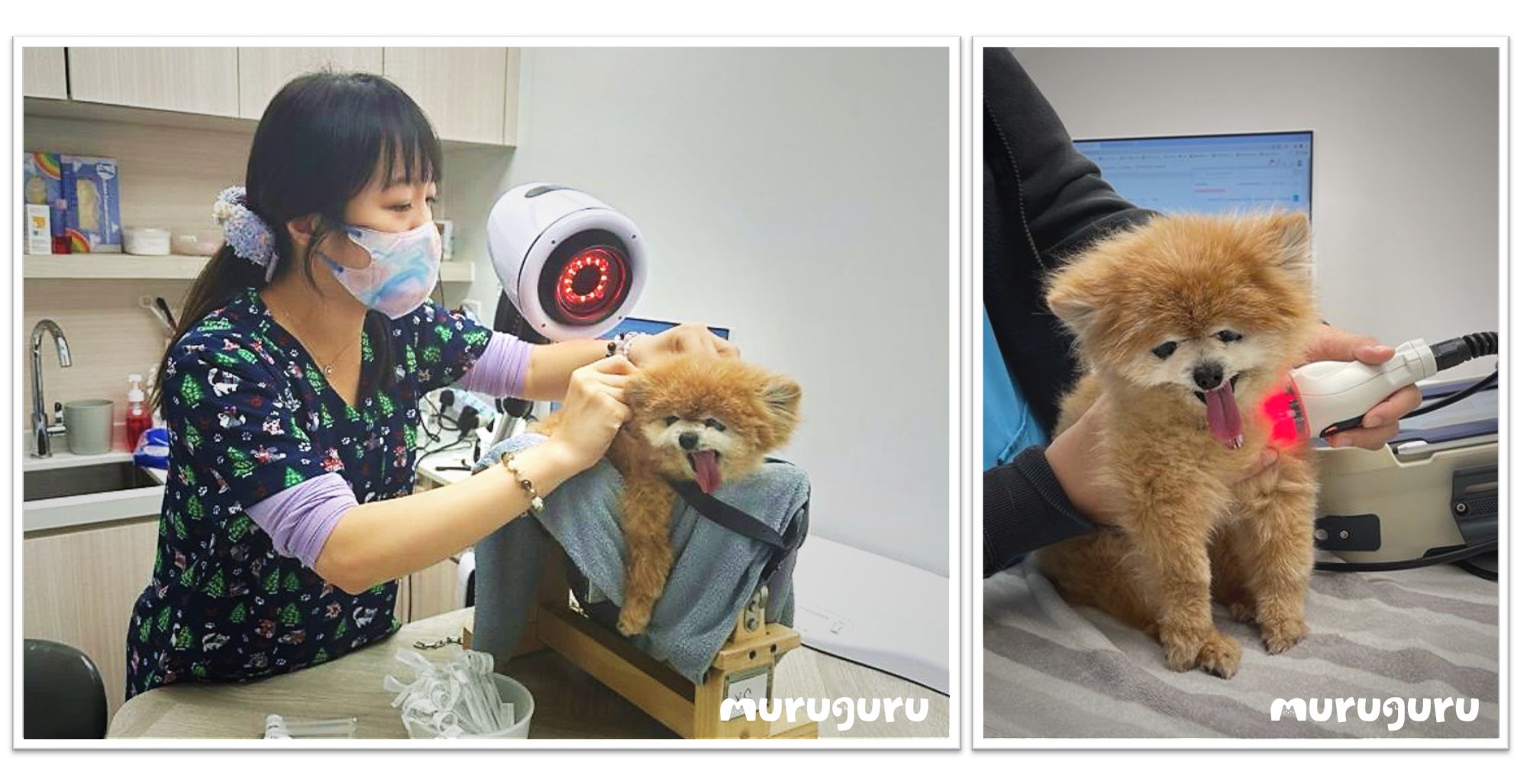 ⦁ 雷射治療:雷射治療透過激光儀器刺激患處的組織,幫助舒緩痛楚和修復神經。在照射期間,Dr. Doris密切觀察波波的反應,同時評估治療效果。