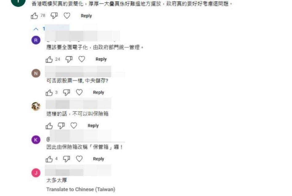 由於買家卻步,這絕對會影響樓價。「我們曾經有些個案,樓價在擁有正式土地契約,以因遺失僅憑影印契出售的折讓幅度,可達到幾十個百分比。」所以網民認為,政府有責任簡化樓契,並將相關程序進一步電子化!