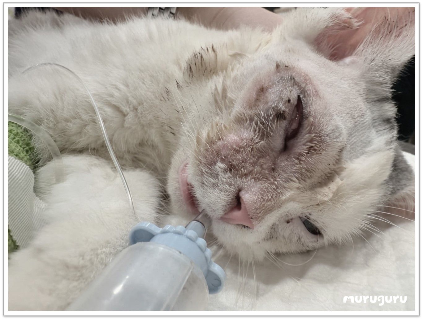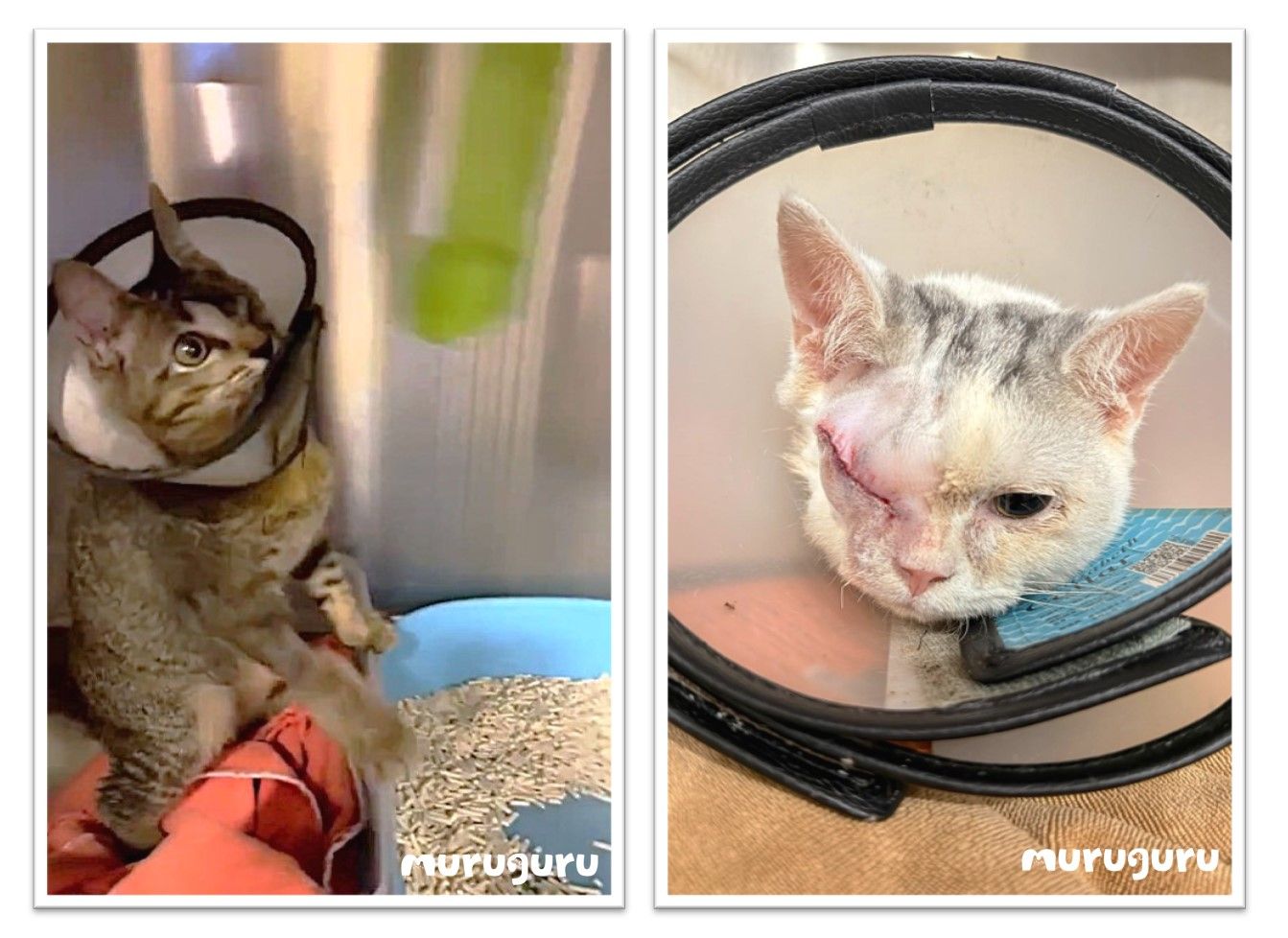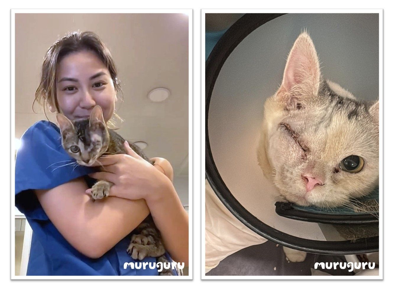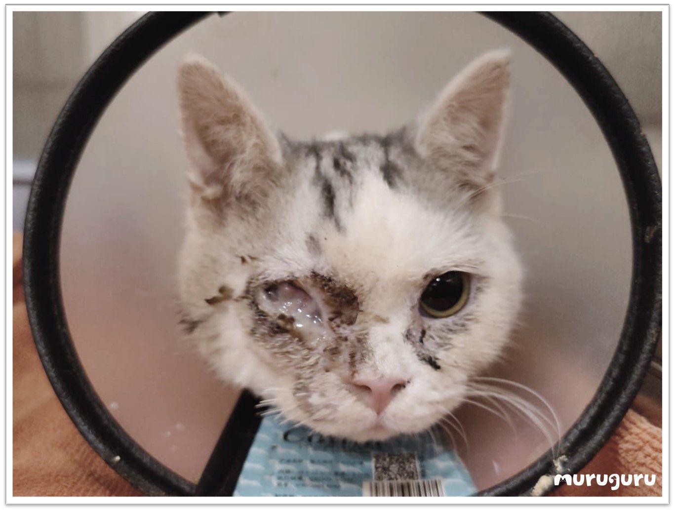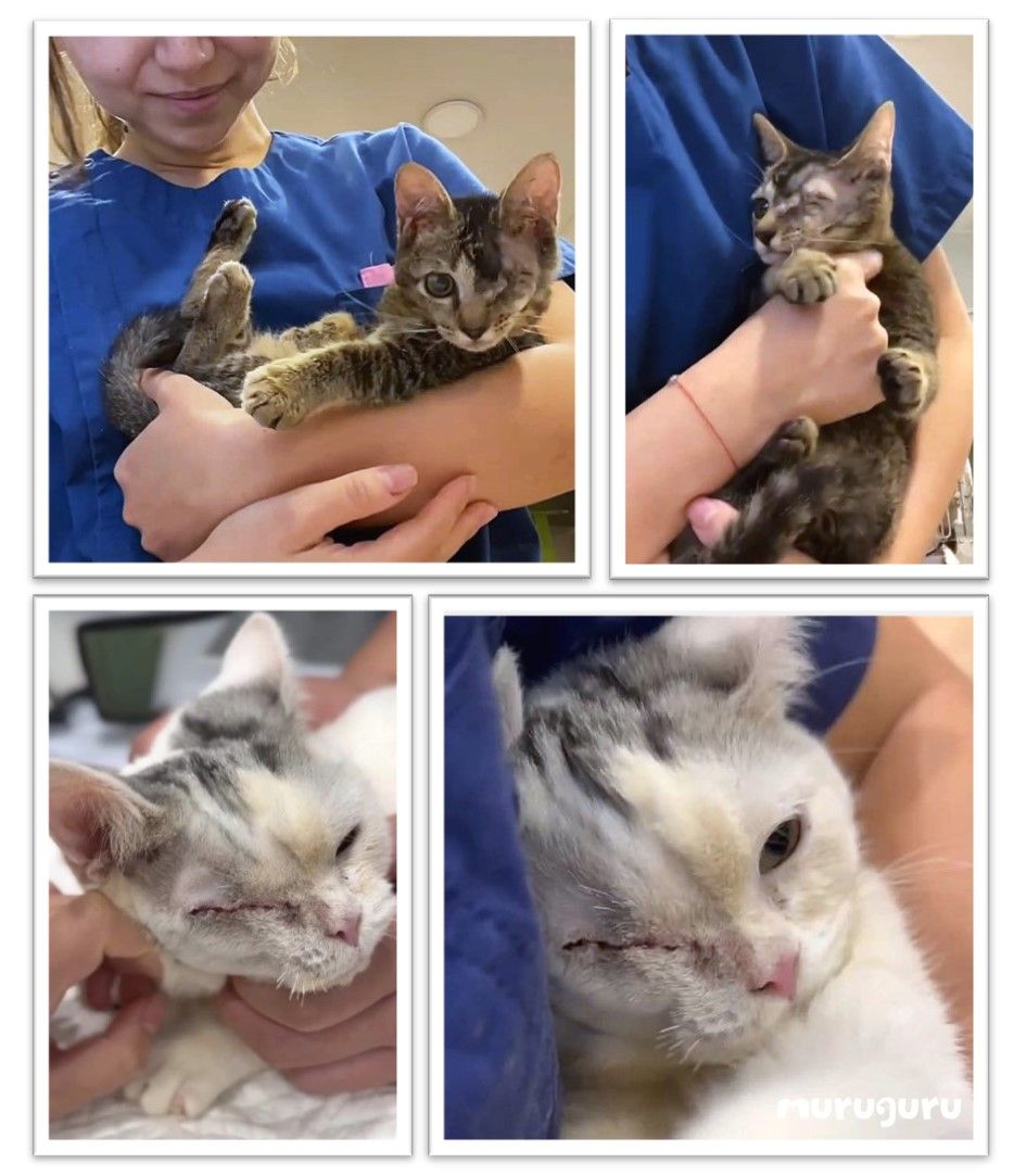 Dr. Angel檢查發現,龍眼和阿福的眼睛已無法恢復。龍眼因長期反覆發炎,角膜穿孔且長時間治療未見改善,很大機會出現繼發感染;阿福的眼睛則持續流膿,眼內組織向外突出,無法正常睜眼。為減輕牠們的痛苦並防止病毒擴散,Dr. Angel決定進行眼球摘除手術。![]()