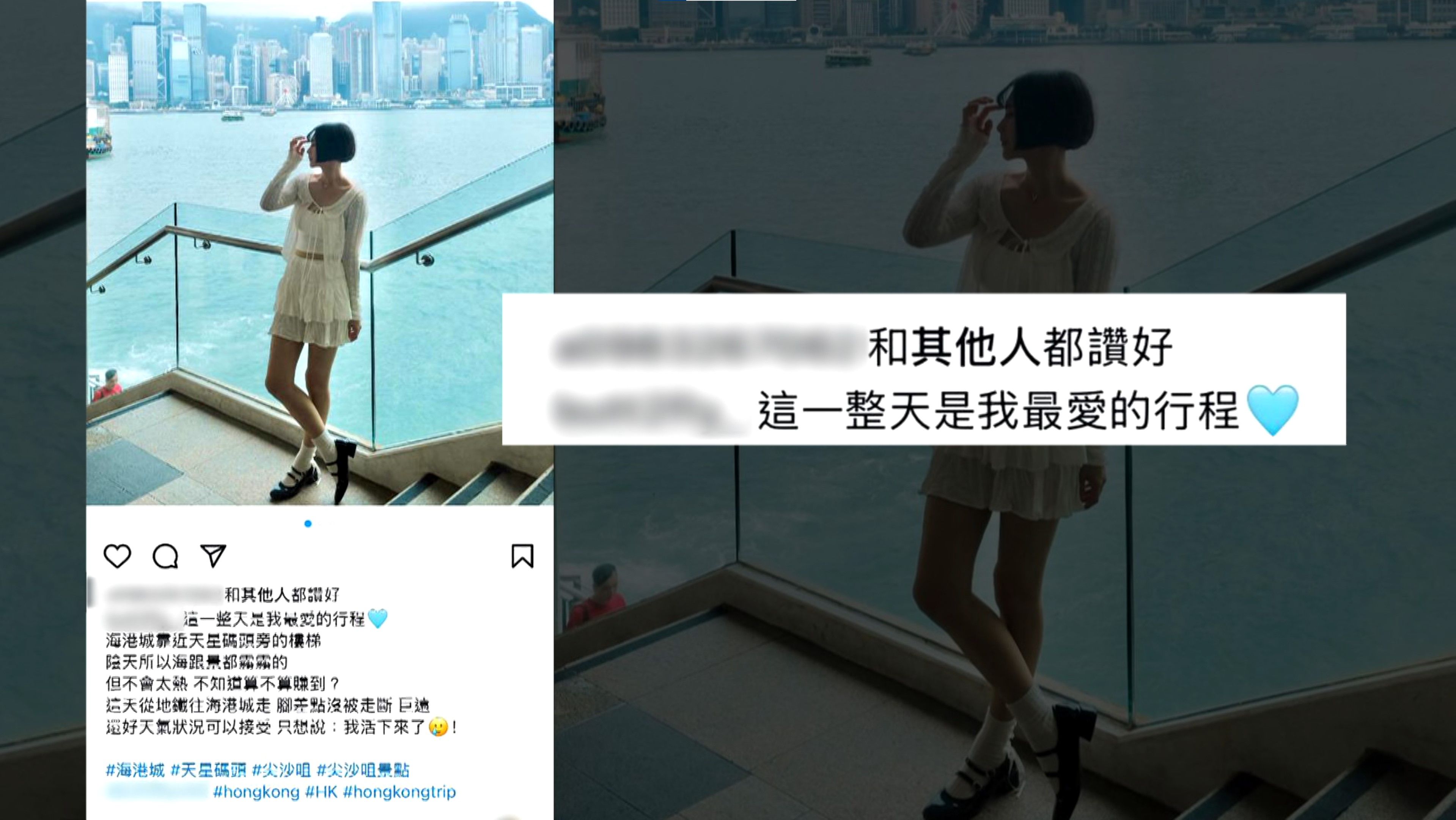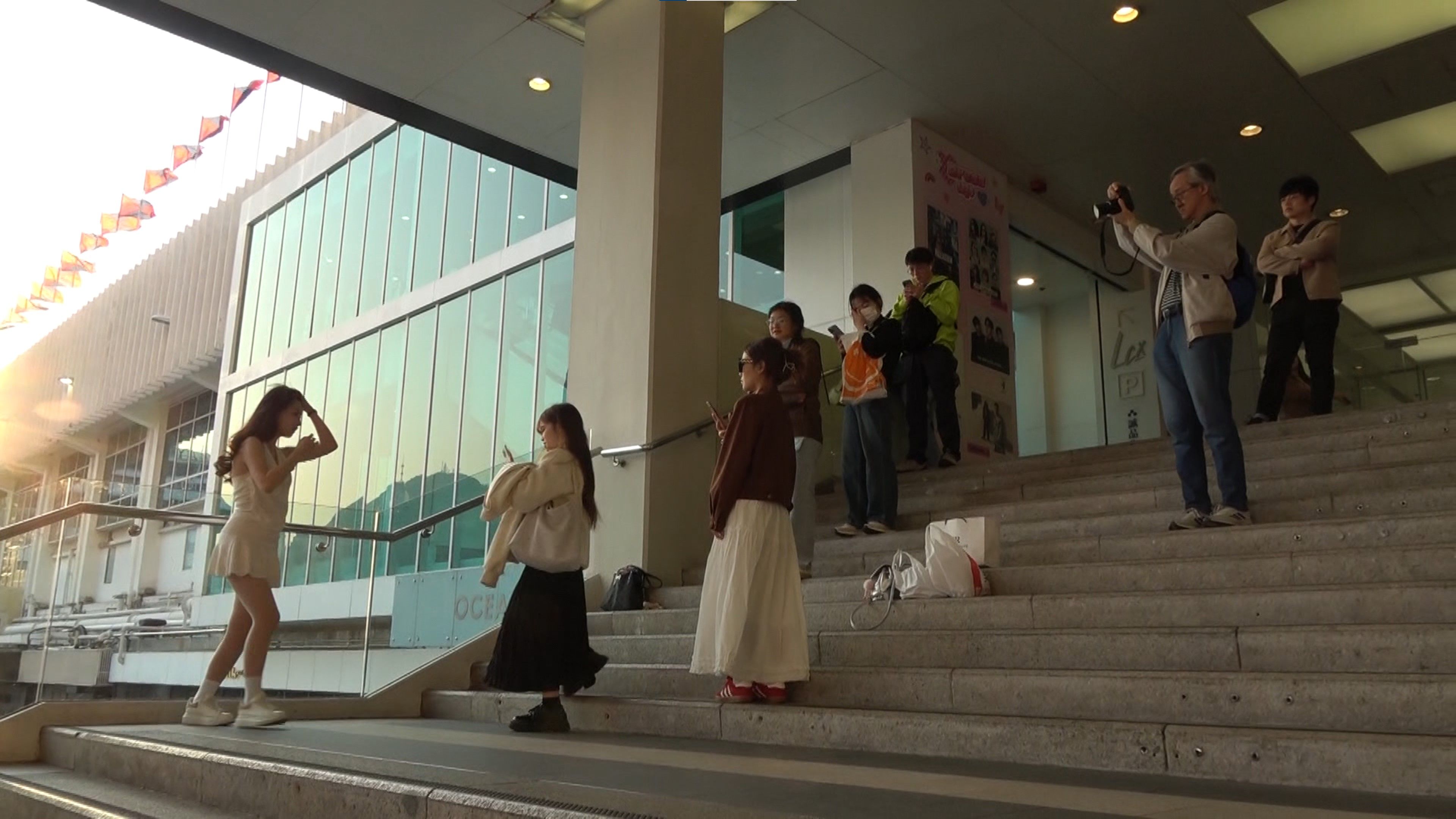 樓梯的位置可盡收維港美景,吸引眾多人拍照,不少更是盛裝打扮的性感美女。