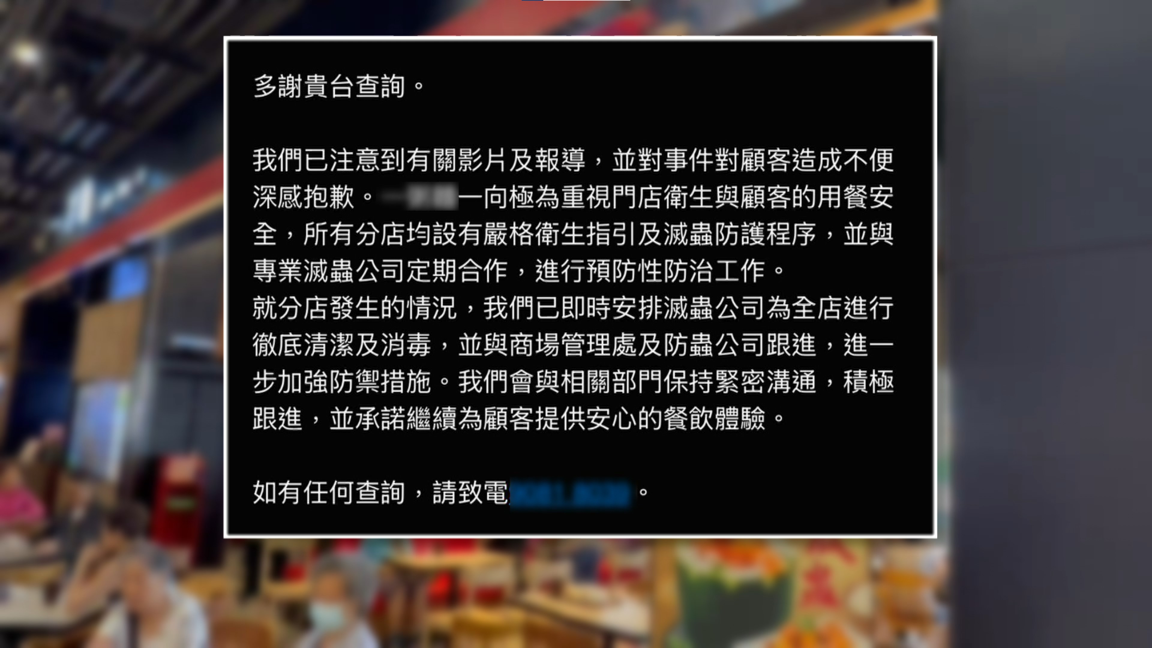 攝製隊今日到場視察,見到該餐廳人流頗多,但就未見有老鼠蹤影。餐廳代表回應查詢時指,對顧客造成不便深感抱歉,事件發生後已即時安排滅蟲公司為全店進行徹底清潔及消毒。