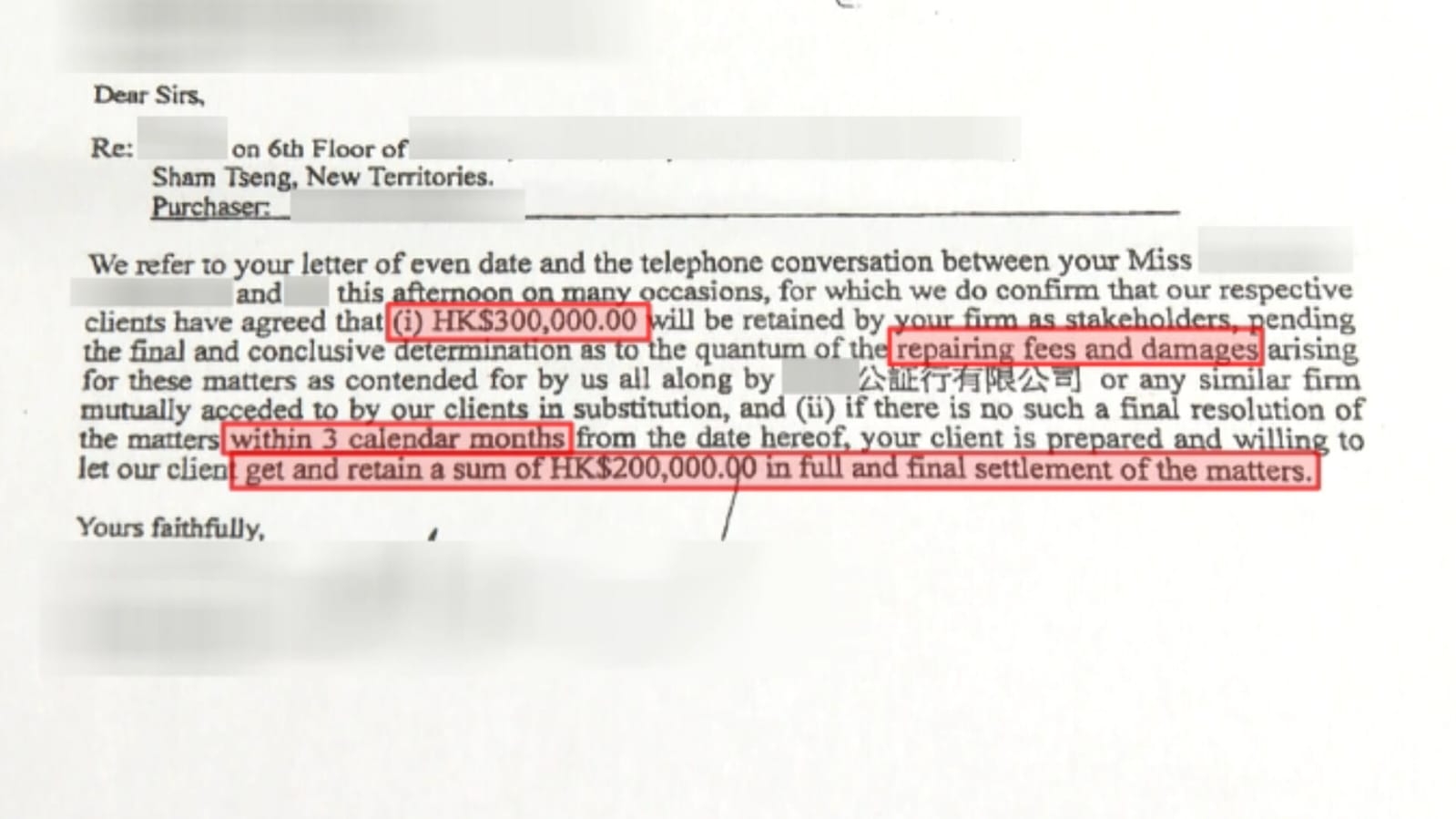 徐小姐覺得如果先將錢放在律師樓都可以,加上前業主都口頭應承支付維修費用,所以才繼續交易。