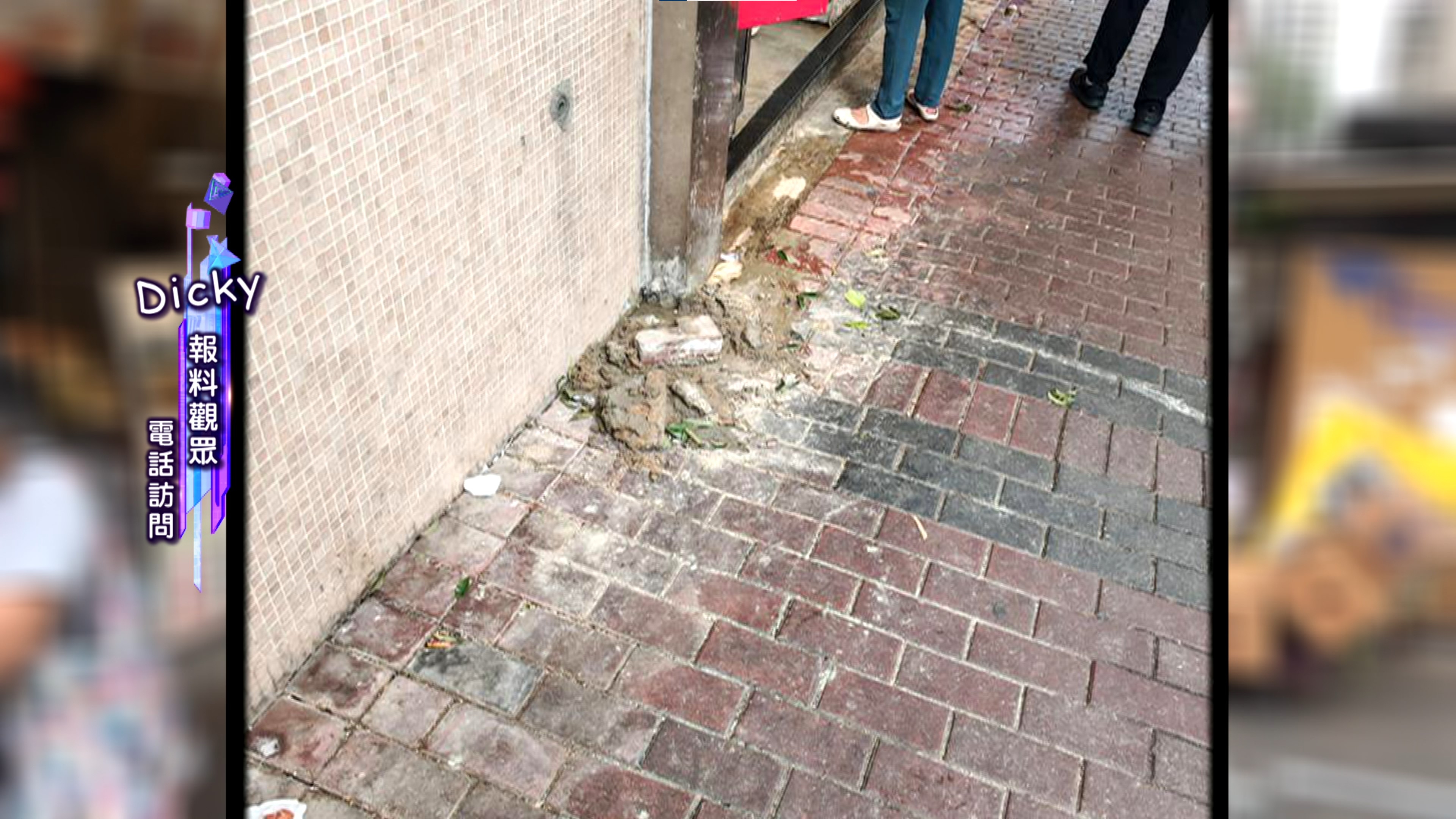 Dicky更指,自己自上月起已多次向政府部門投訴,惟問題至今仍然未獲解決。而現場更加有不明人士將沙及英泥傾倒於漏水處,令環境進一步惡化!