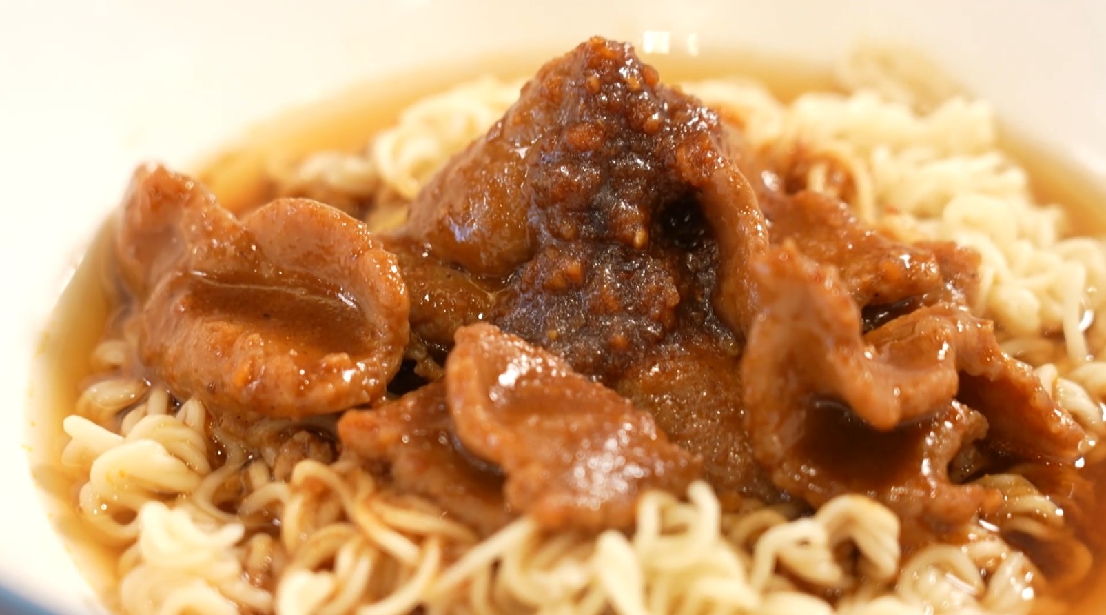 沙嗲牛肉即食麵:沙嗲醬調配出軟嫩的沙嗲牛肉,搭配公仔麵充分吸附湯汁,香氣濃郁卻不辣,味道極具層次,還帶著淡淡的花生香。