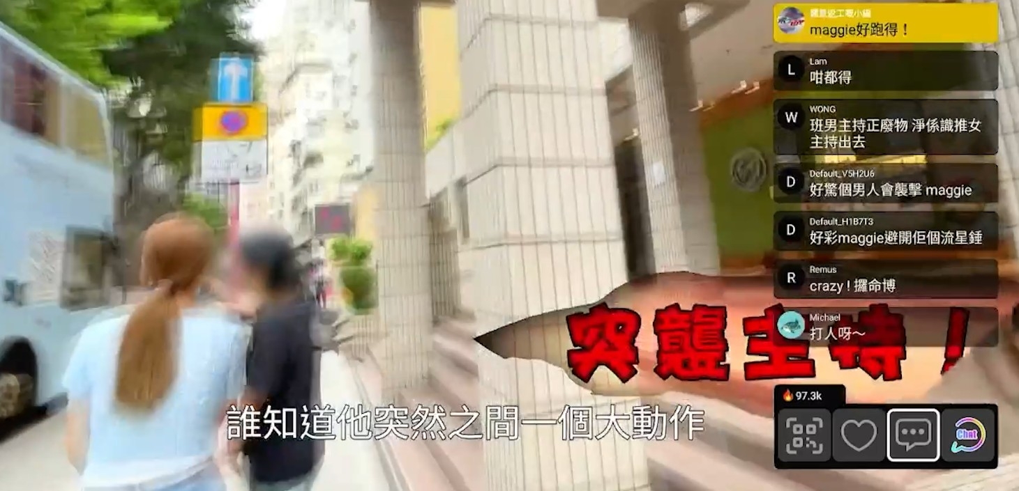 Maggie在myTV SUPER加推3分鐘的時間內,也有分享當時的驚險狀況,坦言其實惡霸不斷講粗口和性騷擾,只是相關片段不適宜在電視播放,所以剪走,但強調自己有保持安全距離,事件中沒有受傷。