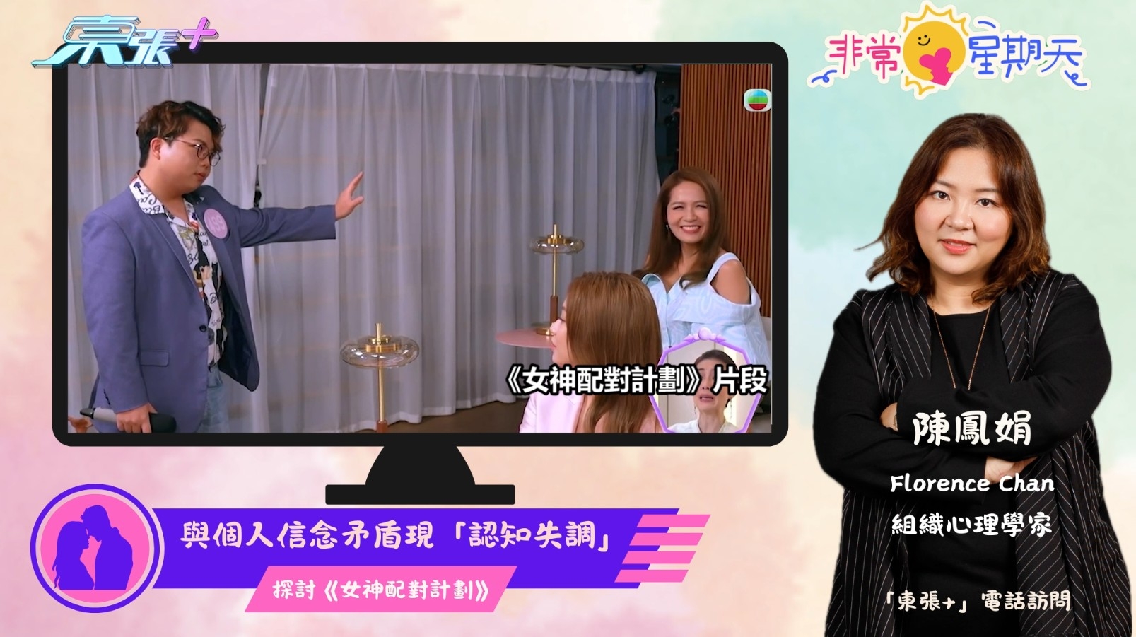 「東張+」今集《非常星期天》特別電話訪問組織心理學家陳鳳娟(Florence Chan)探討網民的「非常」反應,Florence指出,這類招親節目特別容易引起觀眾共鳴,畢竟不少觀眾可能都有類似甚至相同經歷,所以看得非常投入。