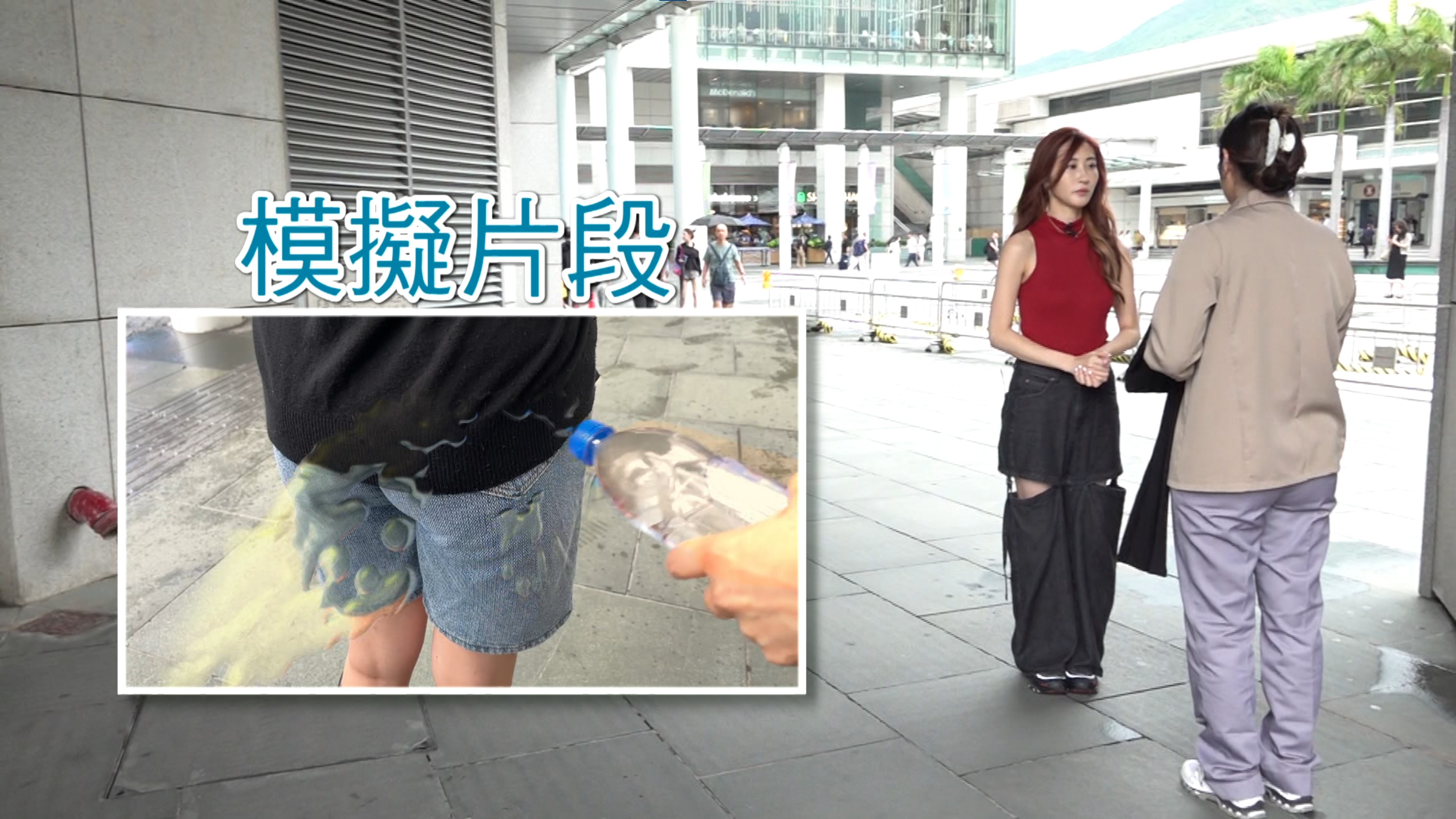 黃小姐指,當時自己正站在簷篷下,突然發現自己的褲濕掉,而受害次數不只一次。她第二次發現褲子濕掉後,回公司脫掉褲子一聞,認為該液體竟然為尿液!黃小姐講述感受。