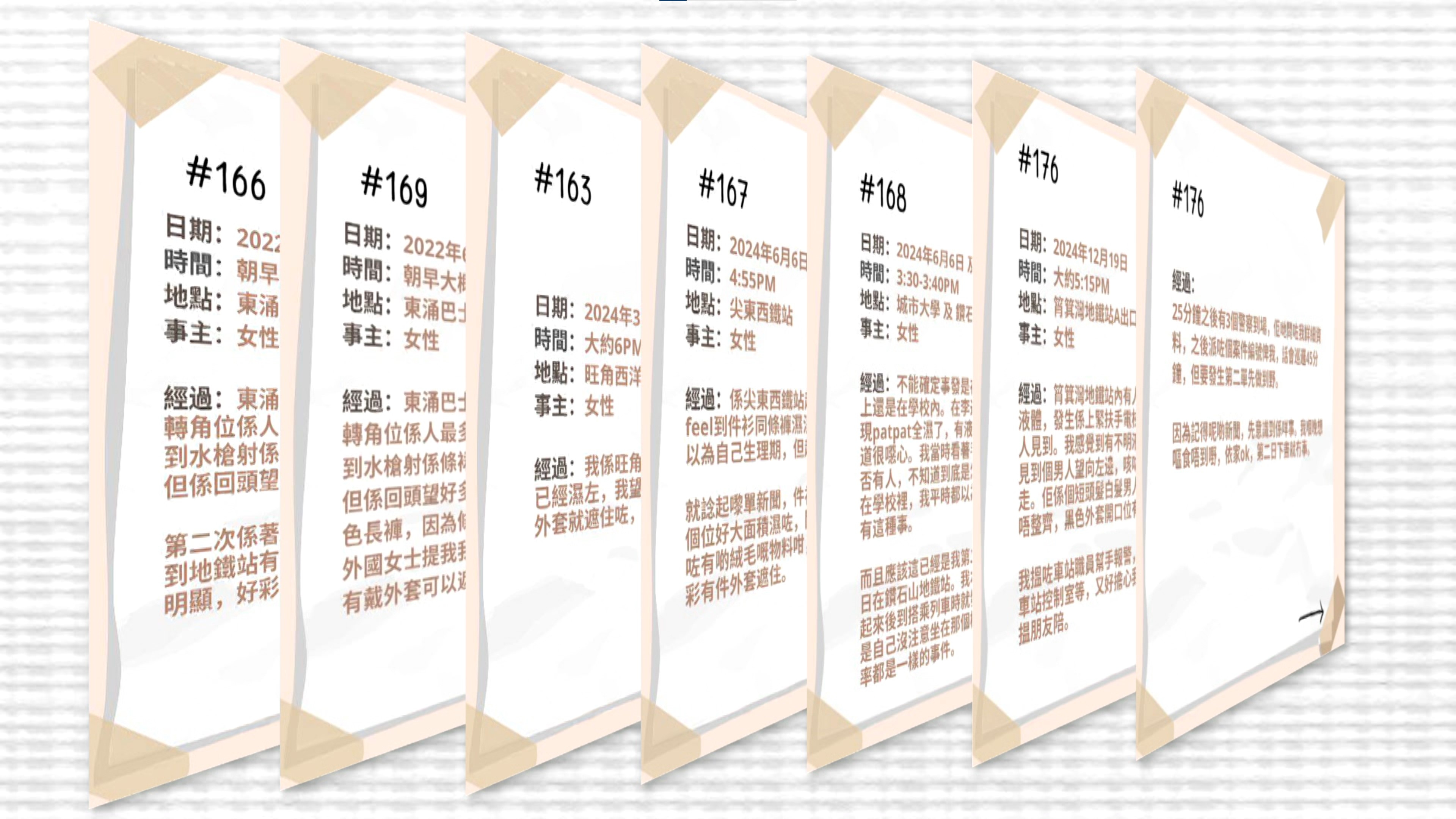 除了黃小姐於東涌站的經歷外,有不少女士都表示於全港各區遭人潑不明液體的經歷,而這一種行為就被歸納為「非接觸式性侵」,是性暴力的一種,可以為受害人帶來不同形式的恐懼及傷害。
