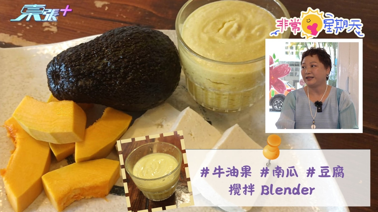 準備牛油果、南瓜、有機豆腐,加水攪拌,即成!