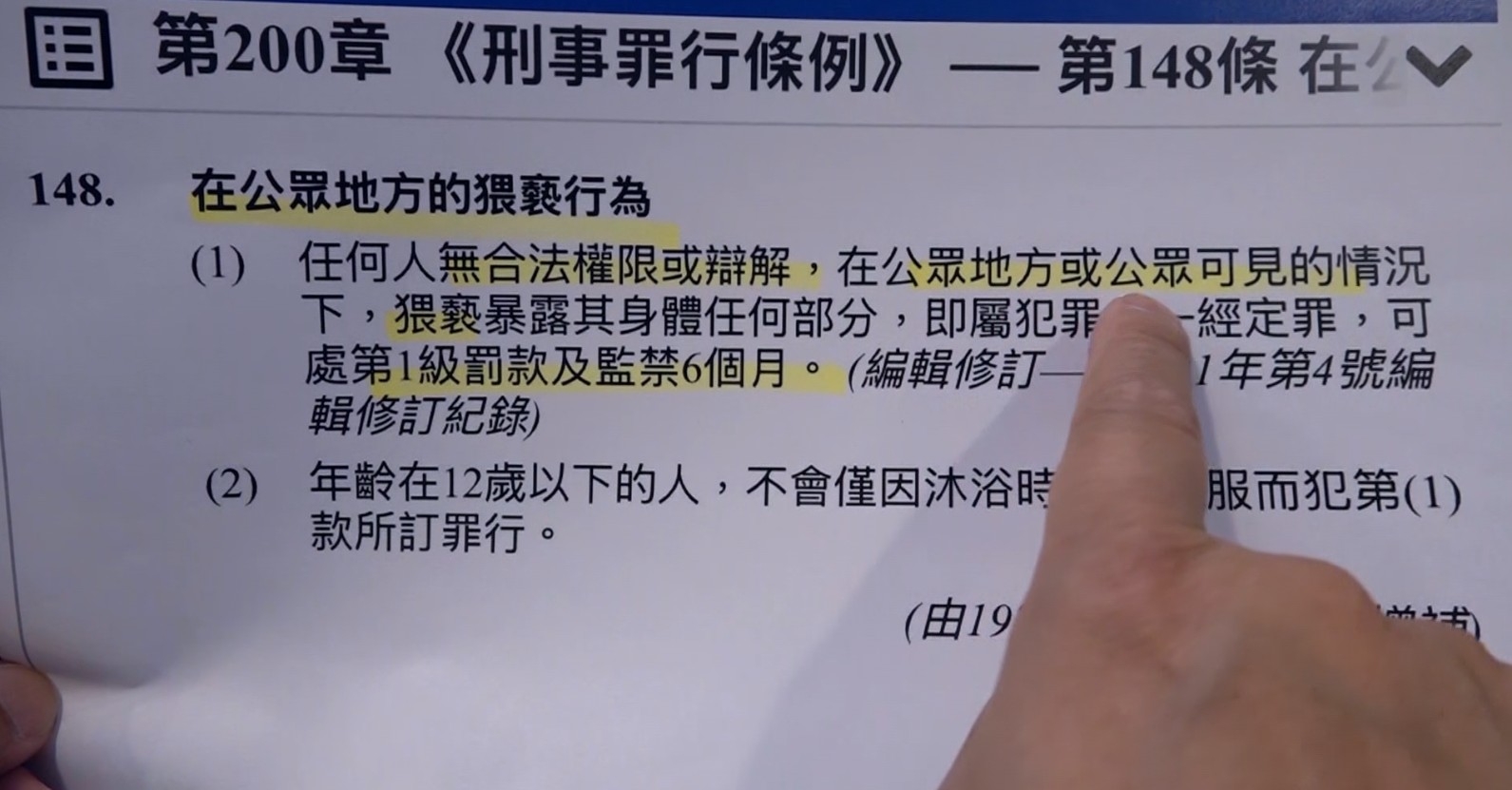 如果在沙灘上赤身露體其實犯什麼罪呢?陸偉雄大律師解釋,這干犯了刑事罪行條例的第148條,最高刑罰會罰款兩千元,入獄六個月。