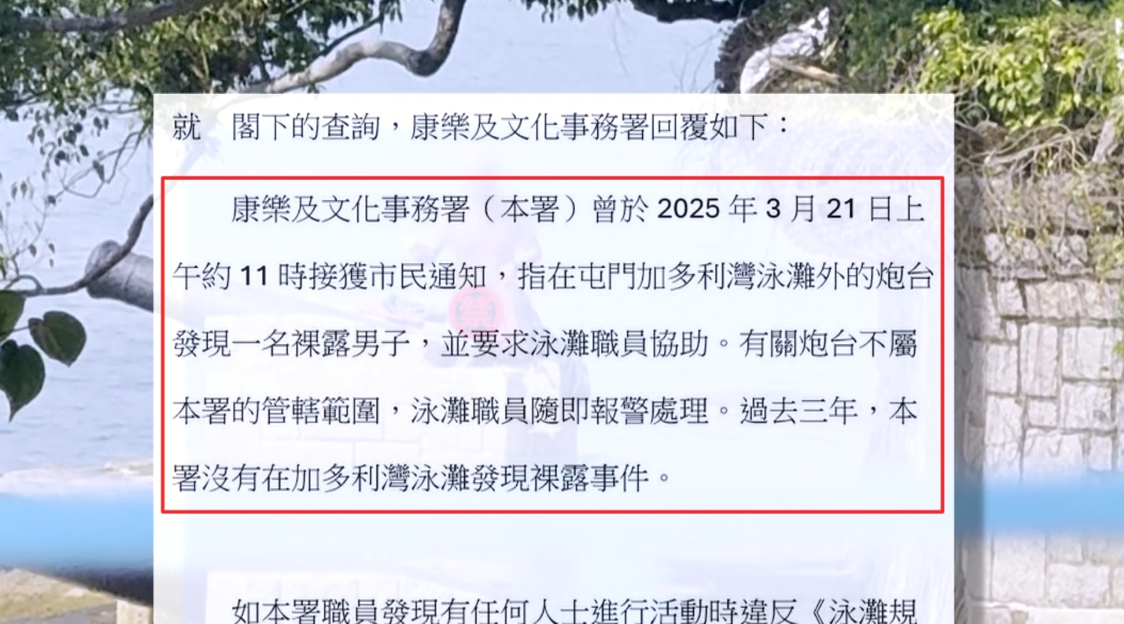 「你不能赤身露體到處走的嘛。」「周不時都有些老人家會這樣的。」「失禮囉!」街坊說的,是屯門加多利灣泳灘經常有不同的男子竟然赤條條曬太陽,還做出不雅行為!