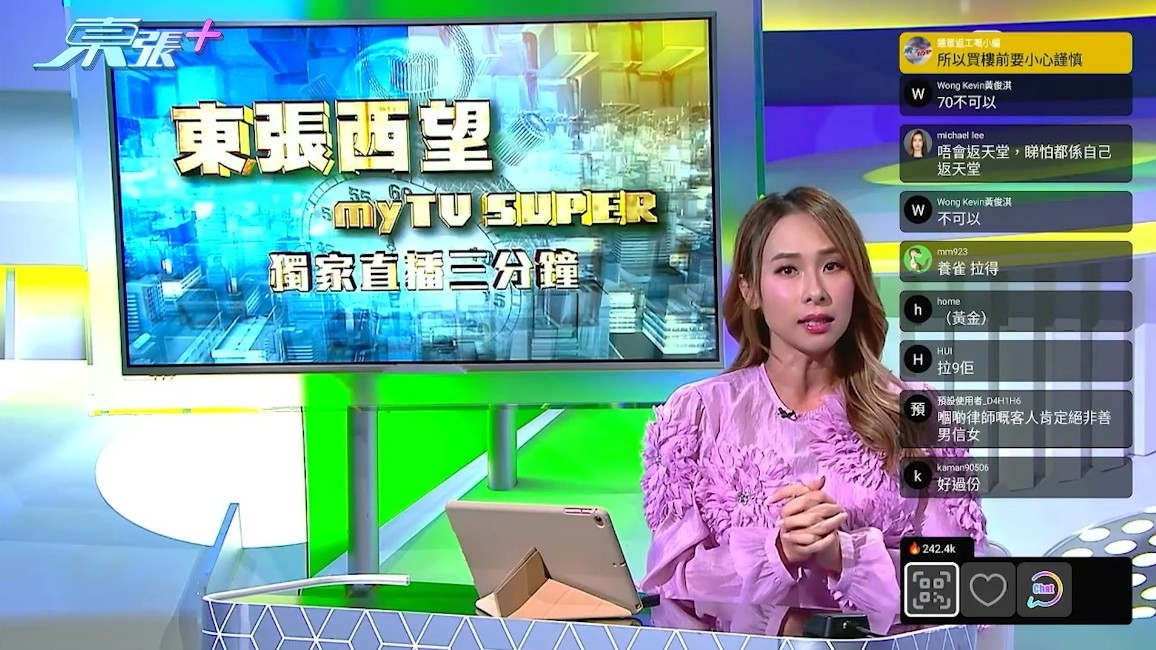 《東張西望》逢週一及週四在myTV SUPER加推3分鐘獨家故事,粉絲觀眾邊看邊玩myTV SUPER Chat,《東張西望》星期四晚報道有苦主買中「無契樓」的苦況引起myTV SUPER觀眾熱烈討論,不少人都同情苦主,質疑是設局詐騙!
