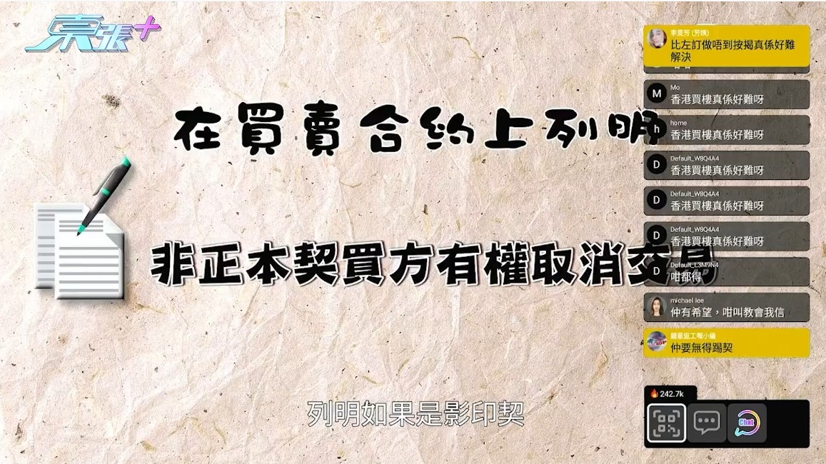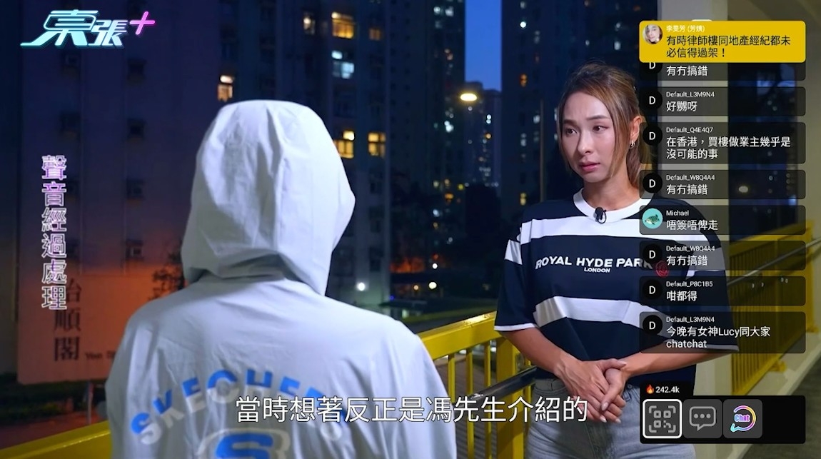 畢竟牽涉大額金錢,陪同大家聊天的主持李旻芳說:「香港買樓真係好難呀,如果中伏就慘,咁大筆錢。」接觸過Kathy的她提醒大家:「有時律師樓同地產經紀都未必信得過㗎!」