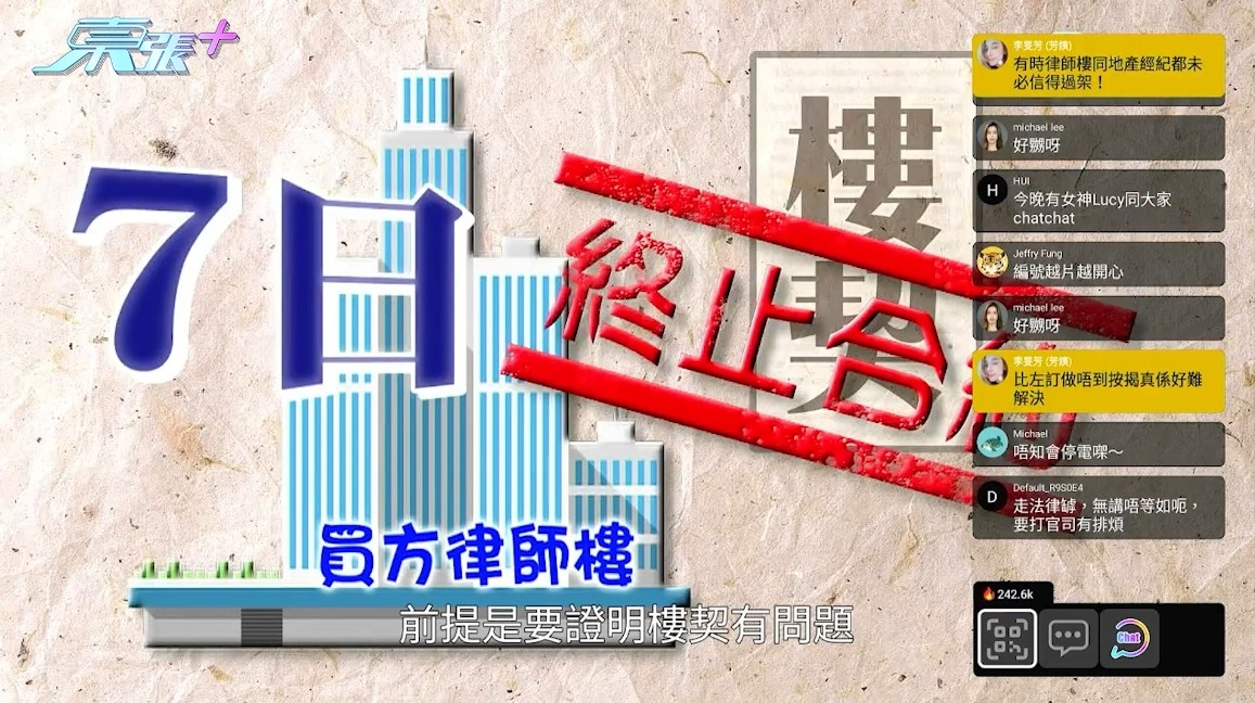 其實買方律師樓在發現樓契有問題後,可以在七日內終止合約,俗稱「踢契」,不過有人就慨嘆,事件兩名地產經紀有蠱惑,「走法律罅,冇講唔等於呃,要打官司有排煩」。