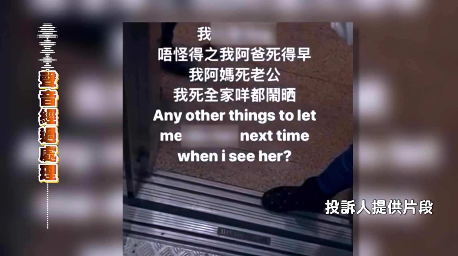 雙方冤家路窄,對方試過不讓葉小姐乘升降機,期間更加說出大量粗口辱罵對方,葉小姐說:「說了很多髒話,說得很噁心,我自己也不想再想起。」
