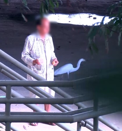 觀眾張先生向東張西望報料,原本以為只是餵養小白鷺,片段可見叔叔定時定候出現在廣福邨一個小型足球場,小白鷺見到伯伯,都會飛撲過來圍着阿伯,期間阿伯指手畫腳,好像跟小白鷺說話呢!