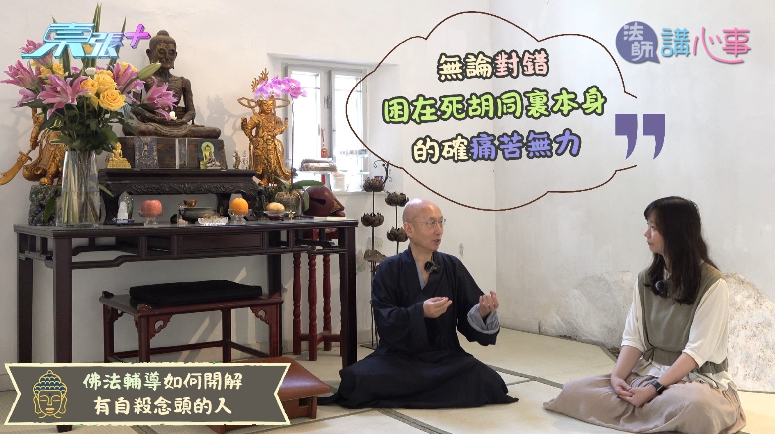 那我們該如何處理自殺念頭?「東張+」今集《法師講心事》找來在香港創辦佛法輔導、拯救無數情緒受困者的釋衍空法師跟大家分享輔導工作處理自殺問題的心得。他指出,出現自殺念頭的人內心很痛苦,深感過不了眼前的難關、無力感太重,認定人生沒有前途、生命再無希望等。所以大家先要理解對方的無力感,陪伴對方找出希望。