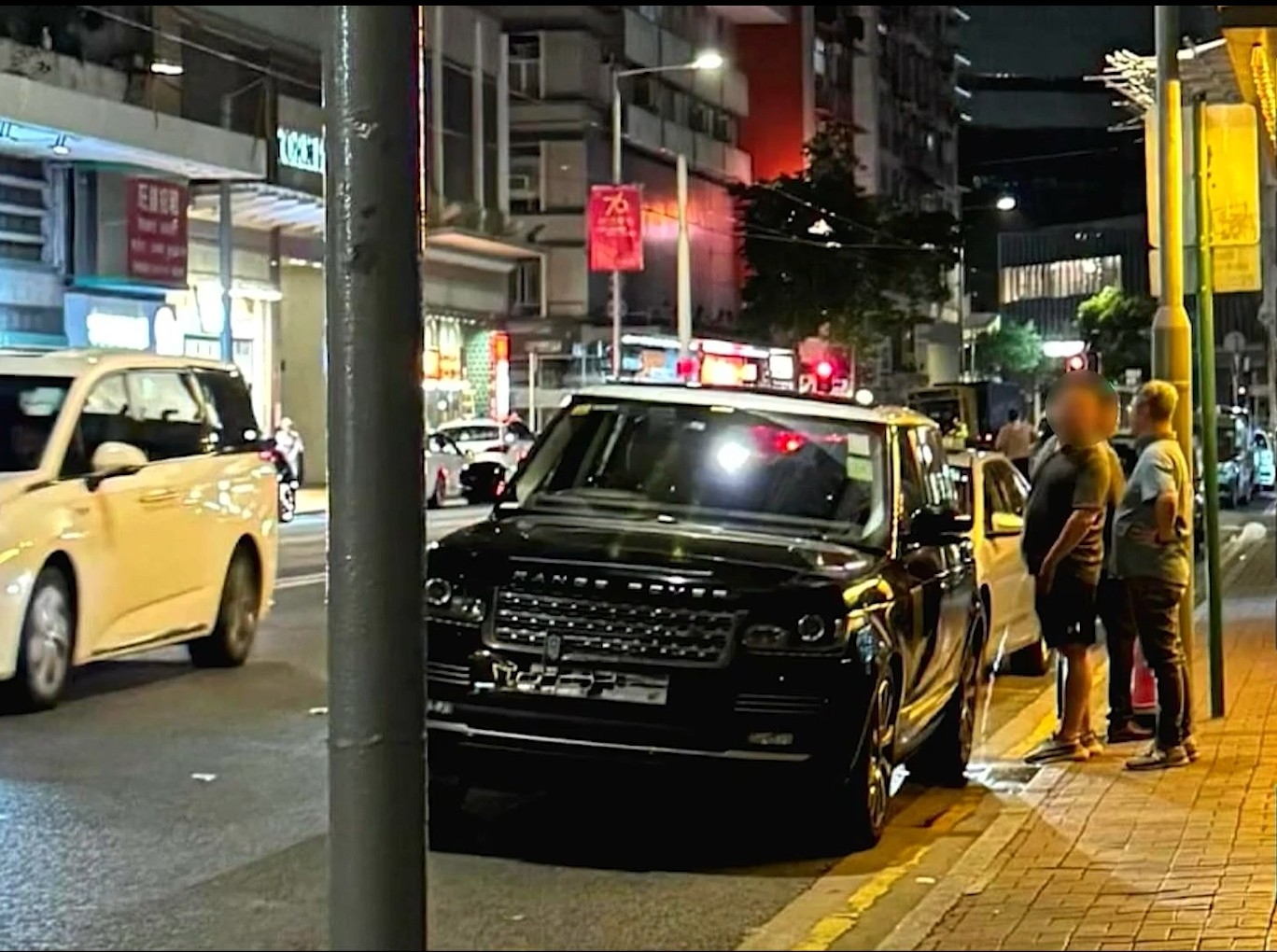 某位觀眾報料,有晚於灣仔著名酒家門口,看見三位男士,初初以為他們在路邊談天;望真啲先,原來竟有人在路旁的名車……隔離小便,唔該晒。