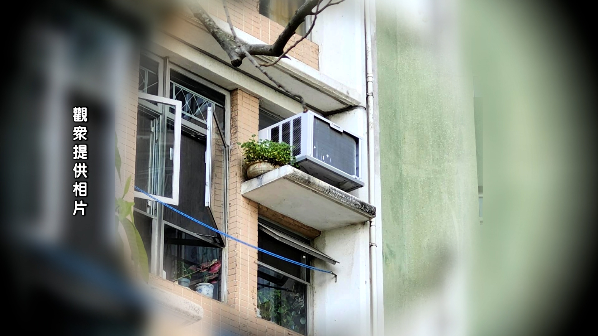 經多日觀察,該住戶長期將曬衣架放在窗外簷篷,而樓下是打卡熱點,麥小姐擔心衣架隨時掉落擊中途人。她曾向對面樓宇管理處反映,但管理員推說負責人不在,自己只管收錢,其他甚麼都不理。