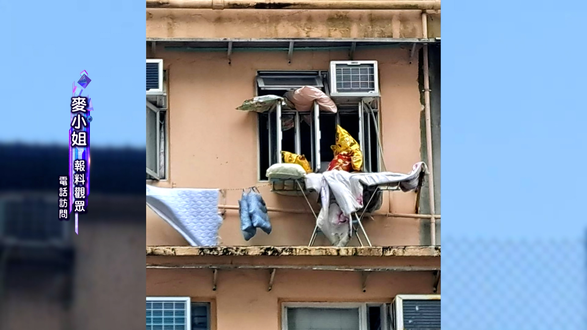 另有鰂魚涌居民麥小姐「報東張」並提供照片指,10月4日上午,見到益昌大廈有高層住戶將大型曬衣架放置窗外簷篷,曬棉被和枕頭等。